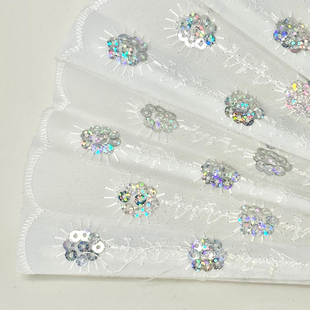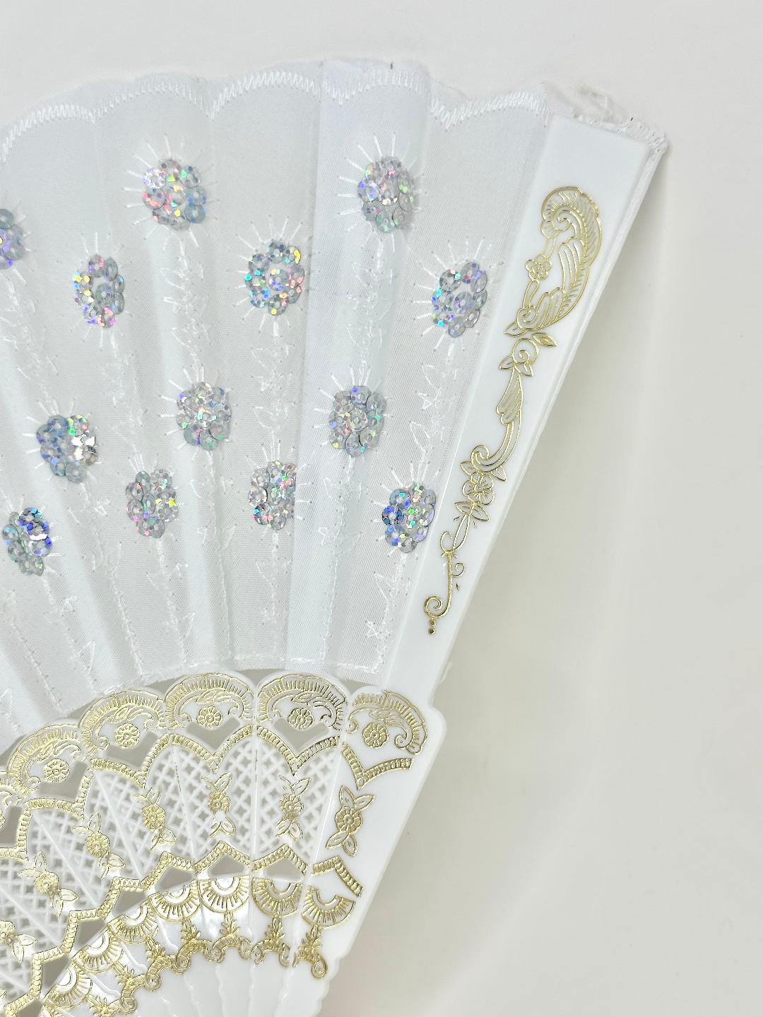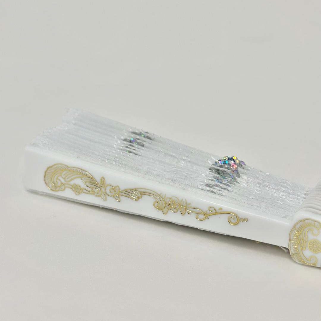 10 Pcs White Cloth Hand Fans with White Gold Plastic Handle