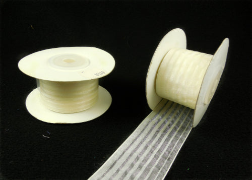 1-1/2" Organza with Satin Lines Ribbon Ivory (10 yds)