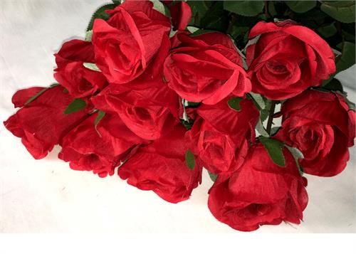 Artificial Silk Valentine Red Roses Single Stem Flowers (12 pieces)