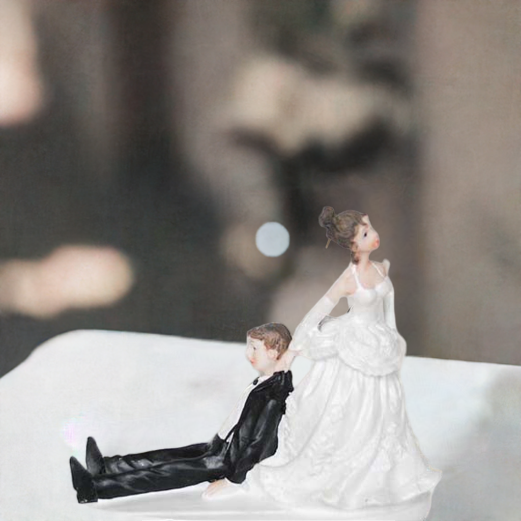 5" Poly Resin Wedding Cake Topper Bride Pulling The Drunk Groom