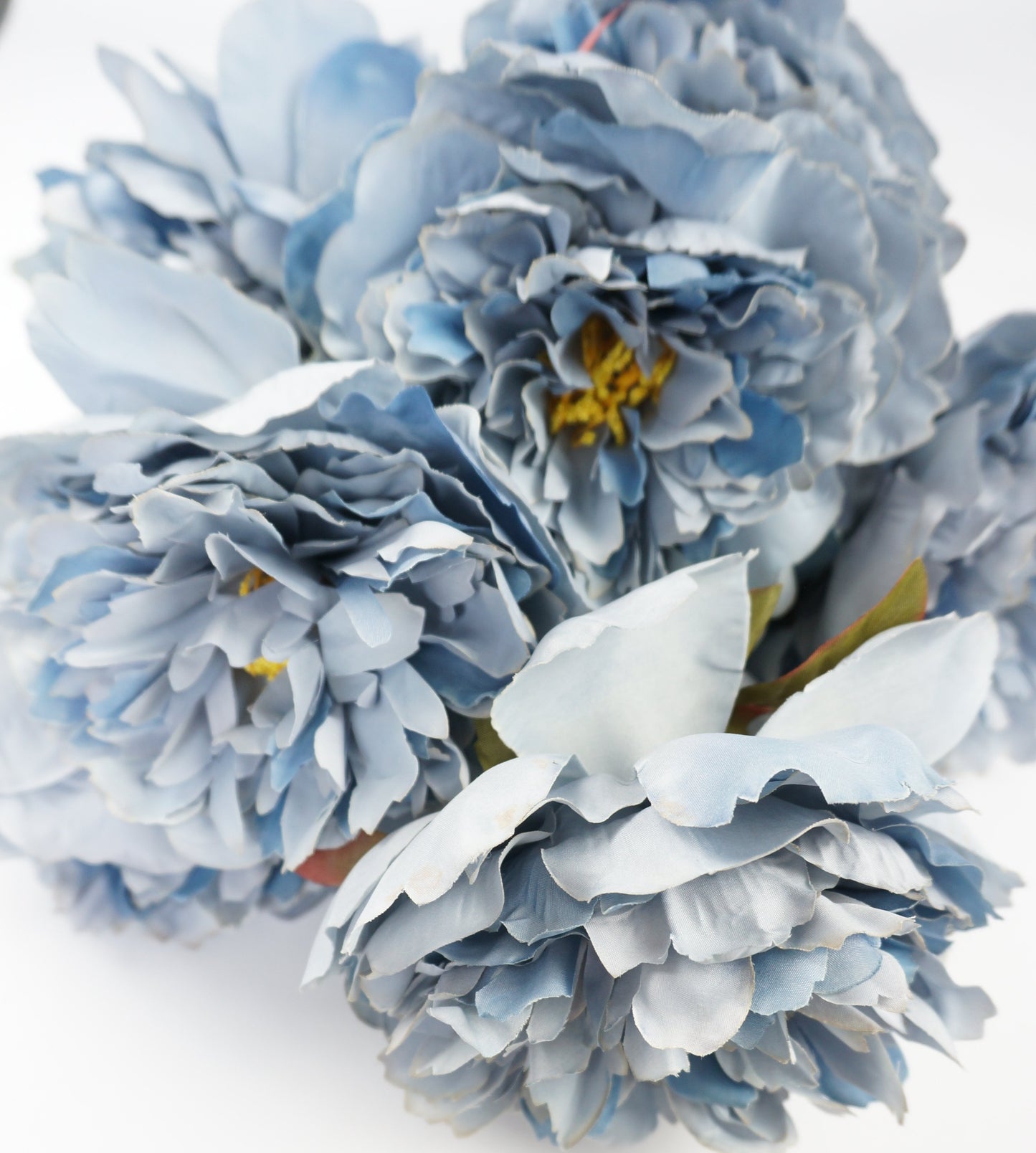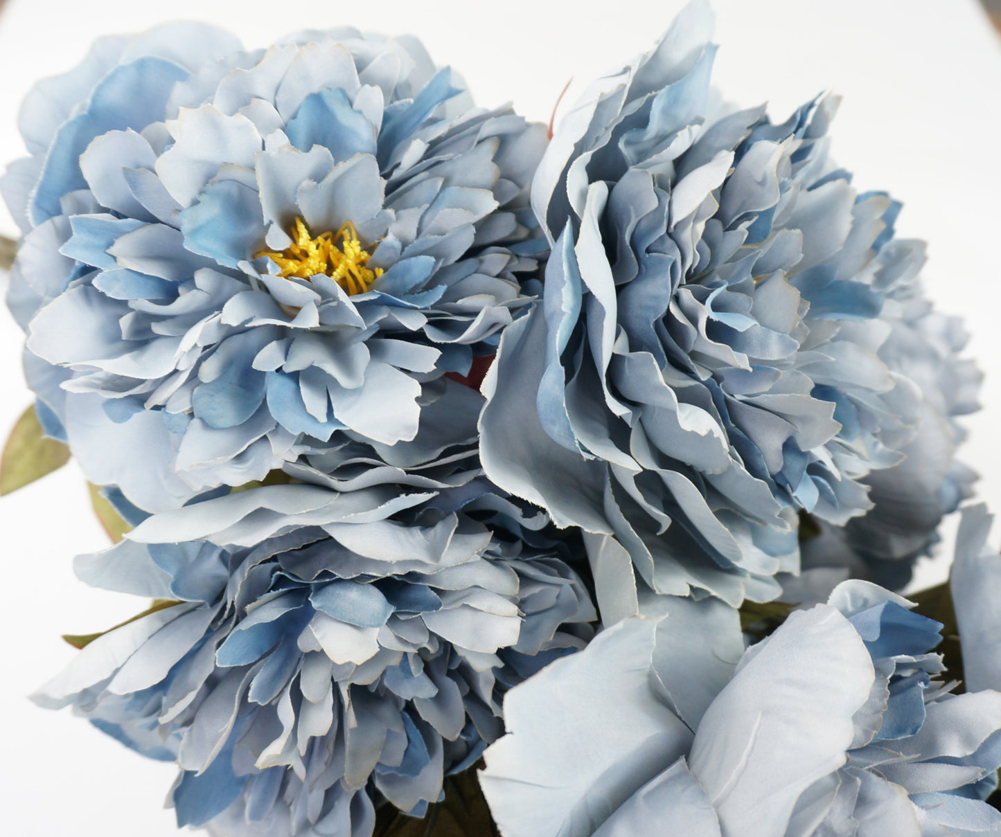 25 Inch Artificial Peony Silk Flower Bush 9 Heads Gray with Williamsburm Blue