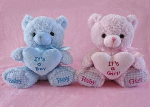 Bring a sense of joy to your baby shower with these stuffed baby teddy bear. Featured with a bow, these baby bears are for its a boy or "It's a girl" showers