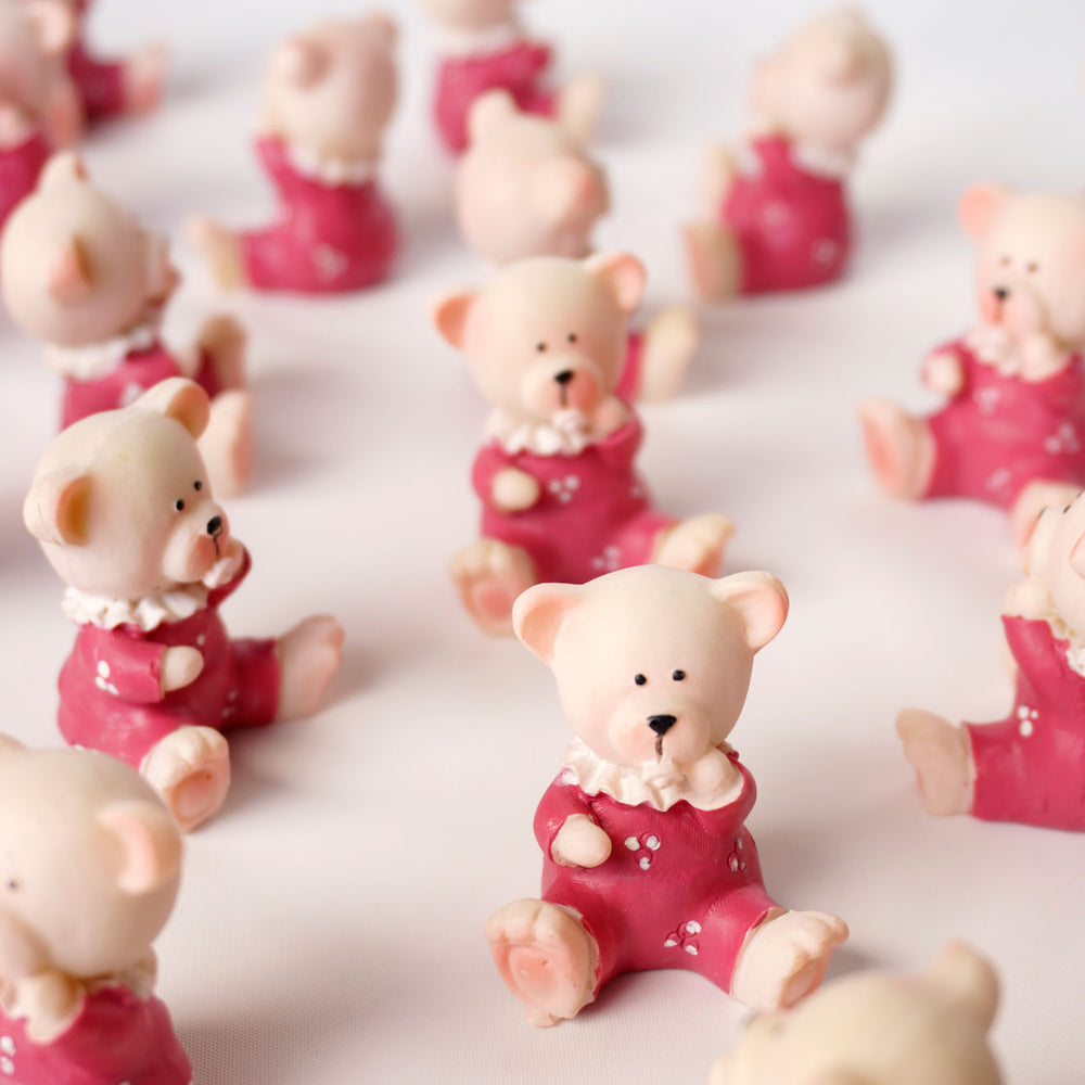Poly Resin Mini Teddy Bear Baby Shower Party Favors Decoration Pink (24 Pieces)