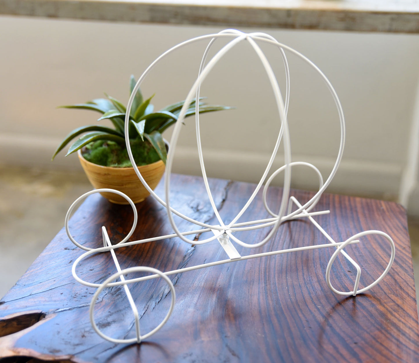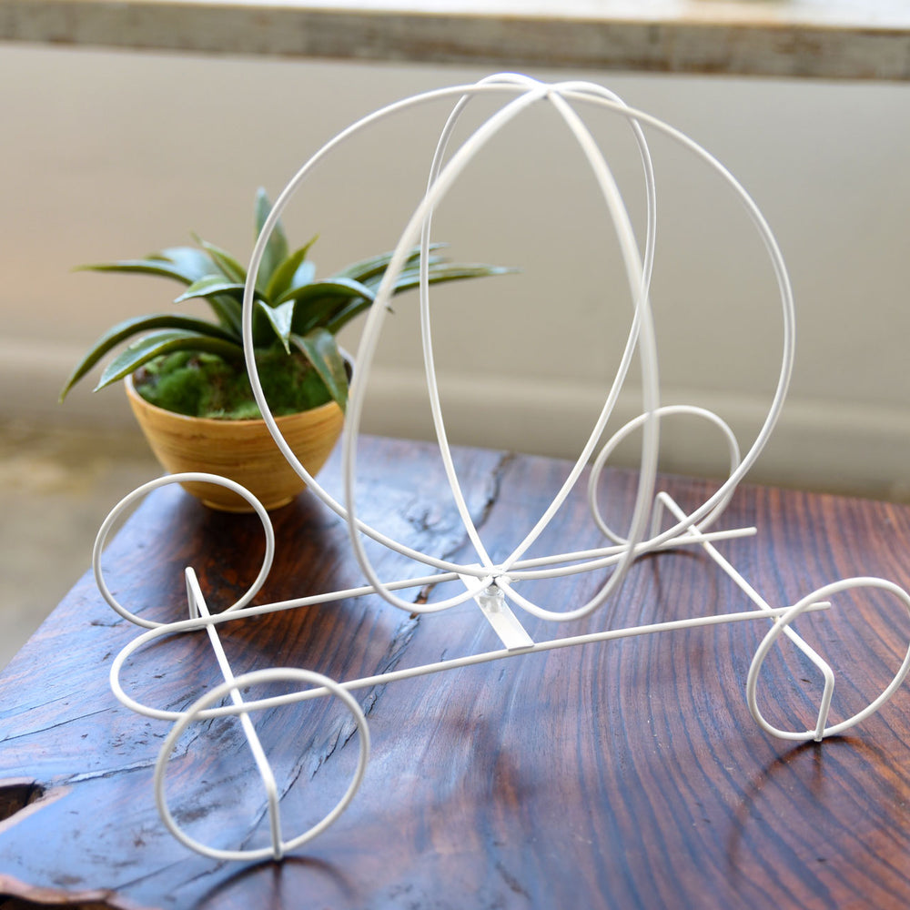 12 Inch White Wire Metal Pumpkin Carriage Centerpiece