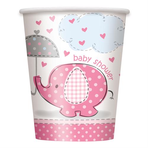 Baby Shower Umbrella Elephant Paper Cups Pink (8 Pieces)