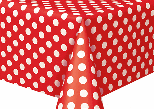 Polka Dot Plastic Tablecloth, 108" x 54", Red