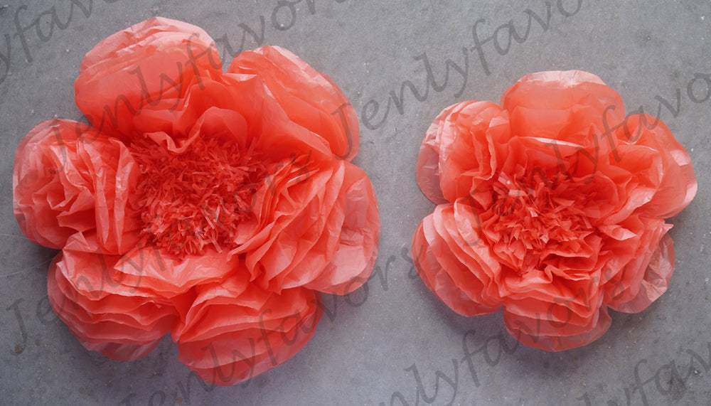 12" & 16" Large Tissue Backdrop Flowers Party Wall Decoration Coral (2 Pieces)