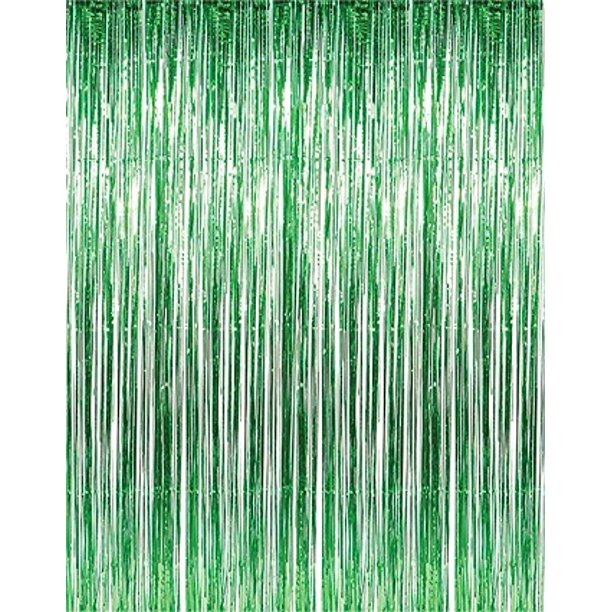 Green Metallic Foil Party Tassel Curtain Fringe Wall Decoration Hanging 3'x 8'