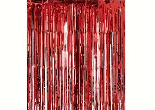 Red Metallic Foil Party Tassel Curtain Fringe Wall Decoration Hanging 3'x 8'