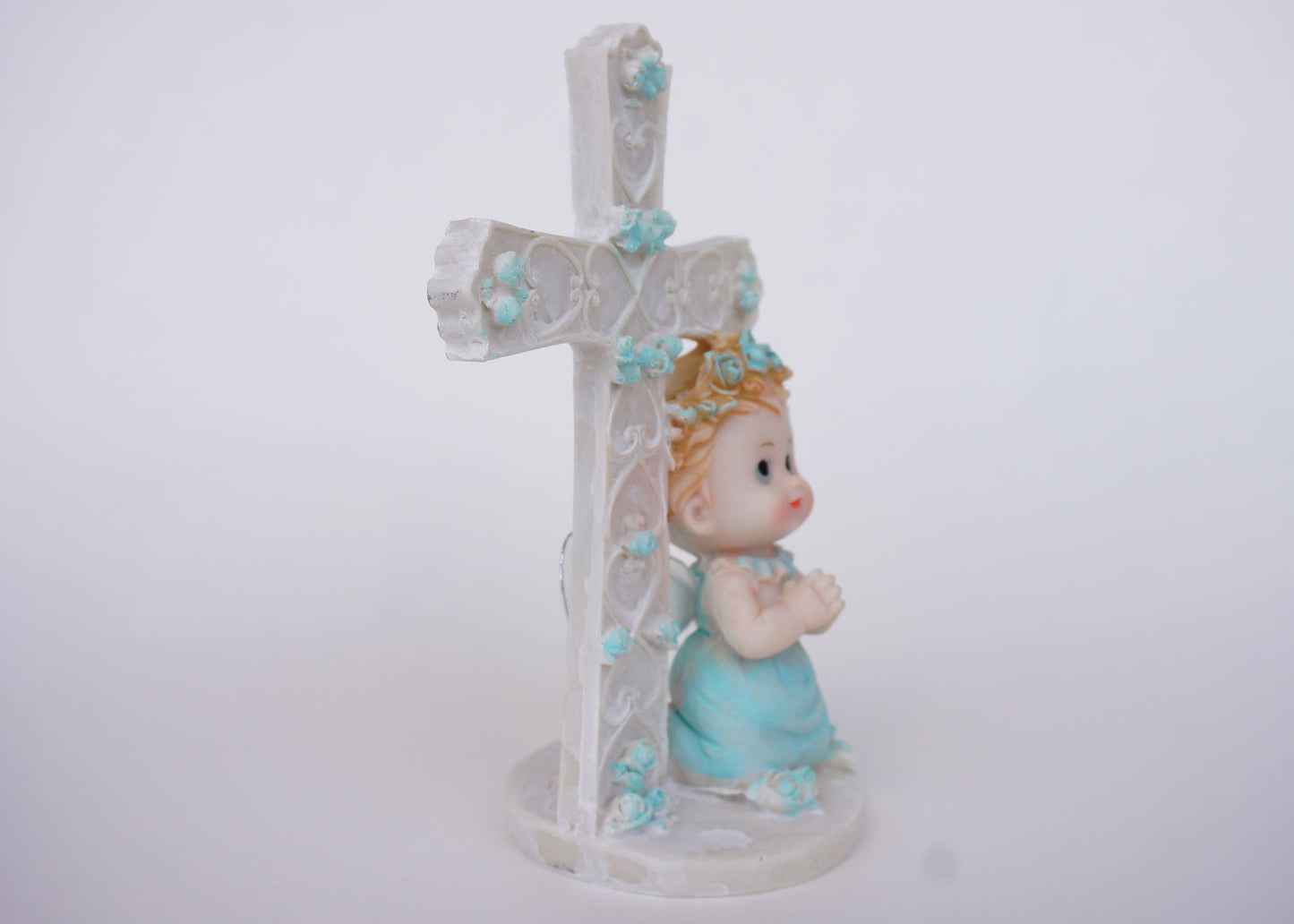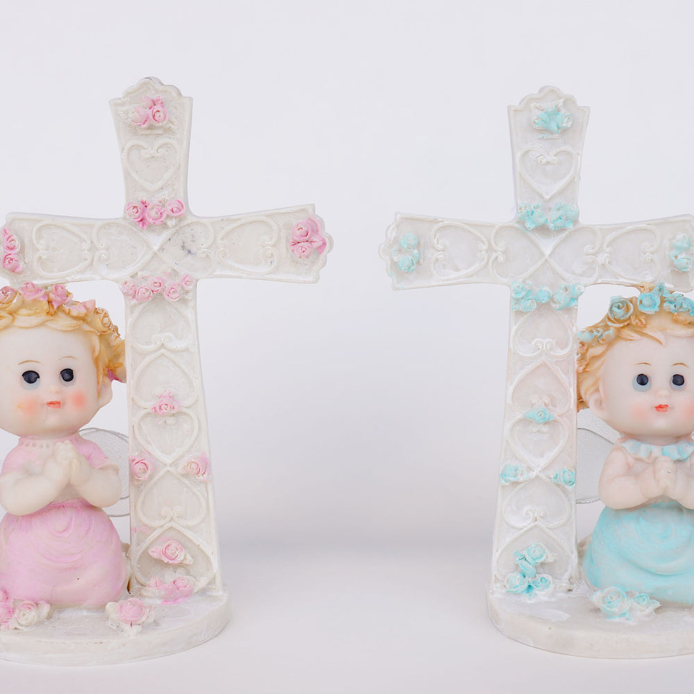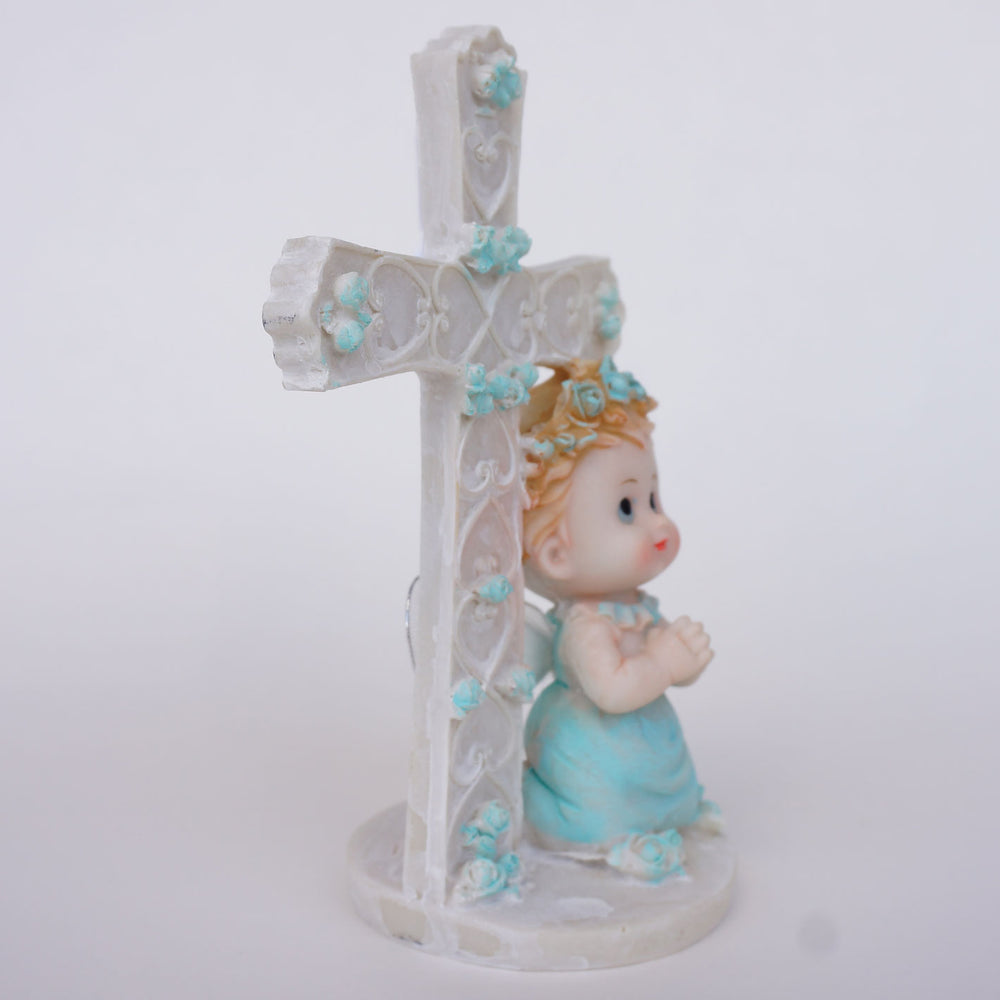 Celebrate a meaningful Baptism or Communion with this elegant 6-inch Light Blue Praying Angel figurine, crafted from durable polyresin. Featuring an angel in a prayerful pose with a cross, this keepsake symbolizes faith and devotion, making it a thoughtful party favor or decorative piece. Its compact size allows for easy display on shelves or tabletops, serving as a lasting reminder of a special spiritual milestone. Perfect for boys, this figurine combines quality craftsmanship with heartfelt symbolism, enhancing the significance of your religious celebration.