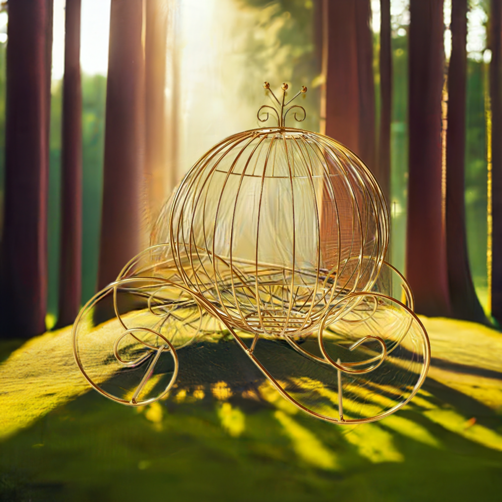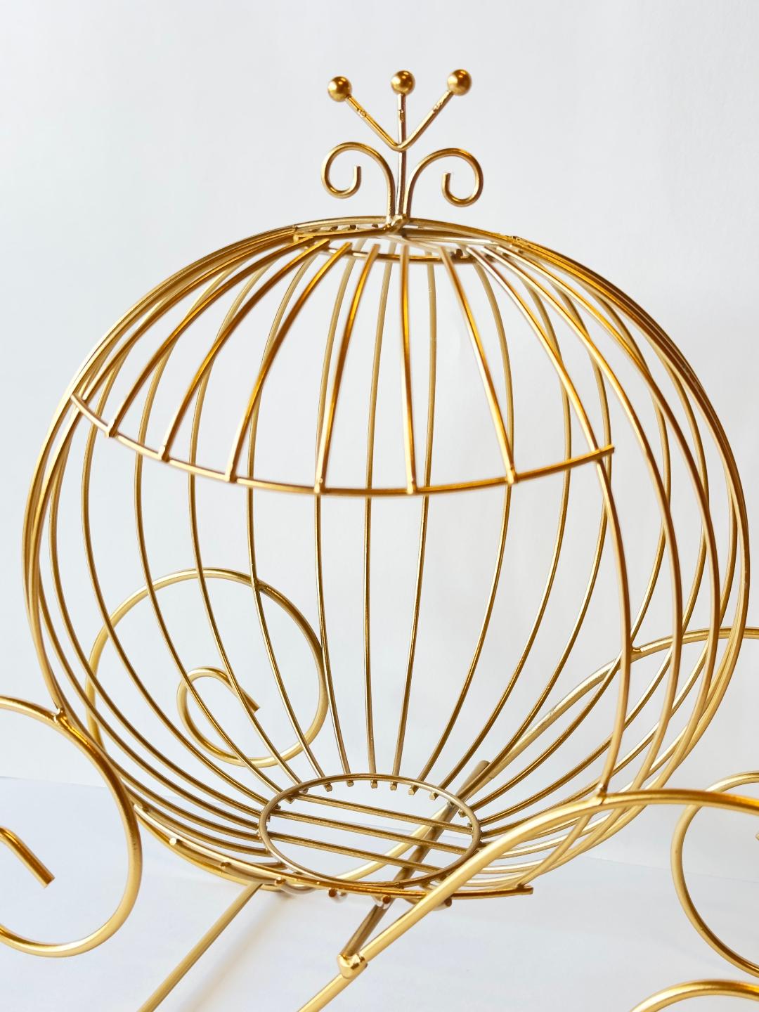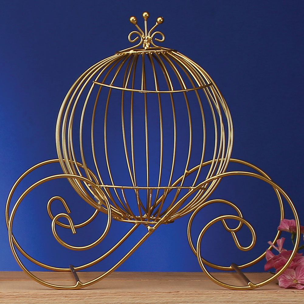 15 Inch Gold Wire Metal Pumpkin Carriage Centerpiece
