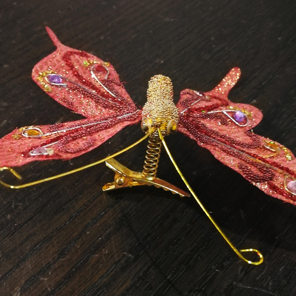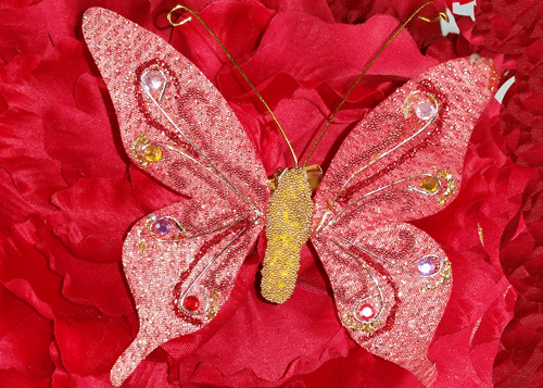 4.5" Handmade Artificial Butterflies Decoration with Clip Red (12 pieces)