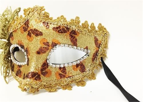 Handmade Gold Venetian Mask with a Glittering wire Butterfly
