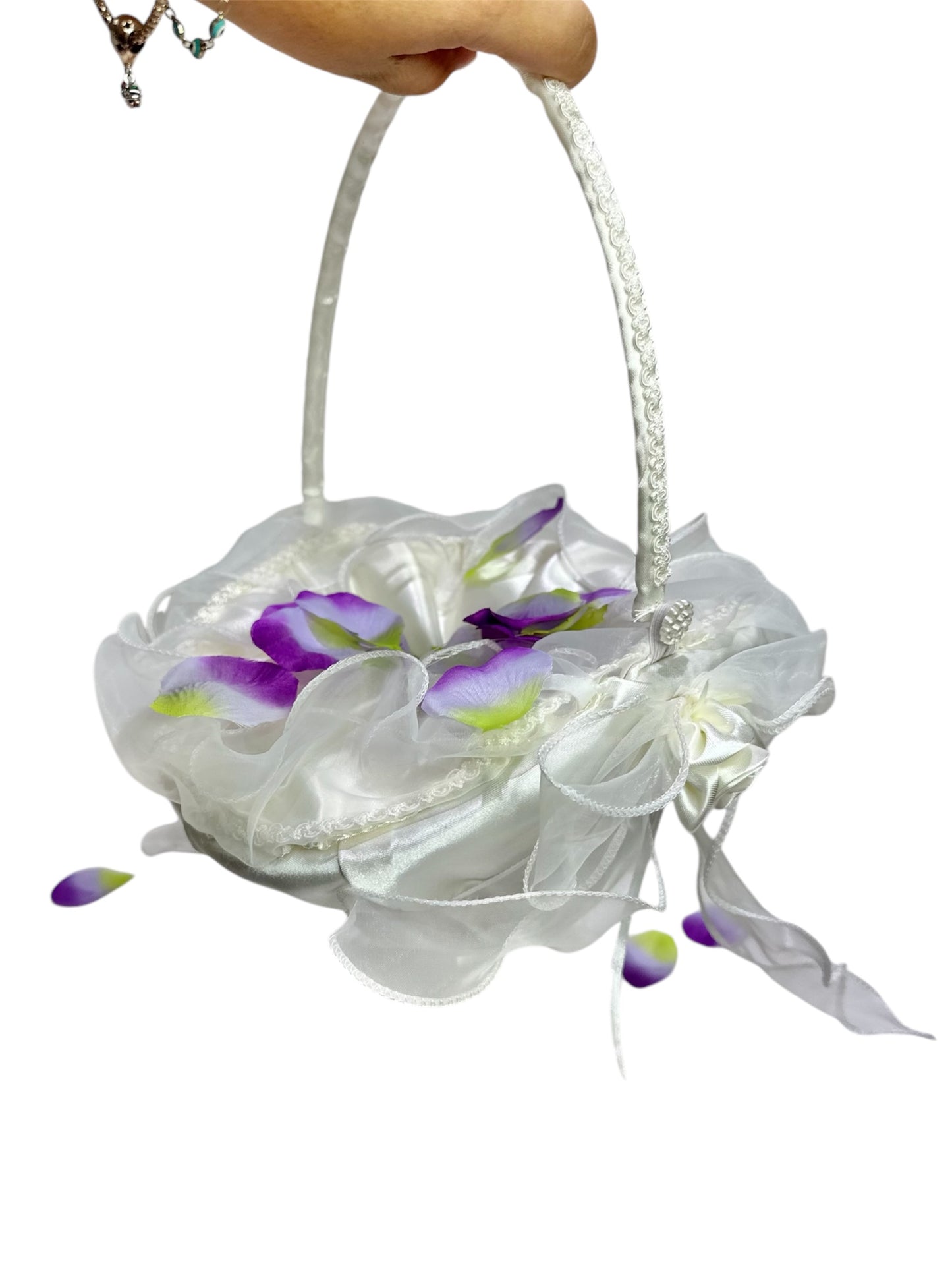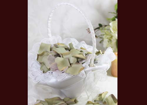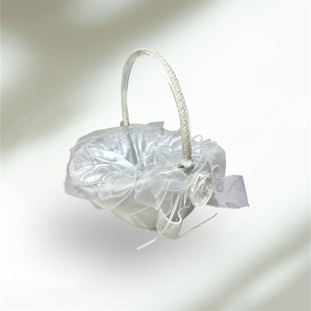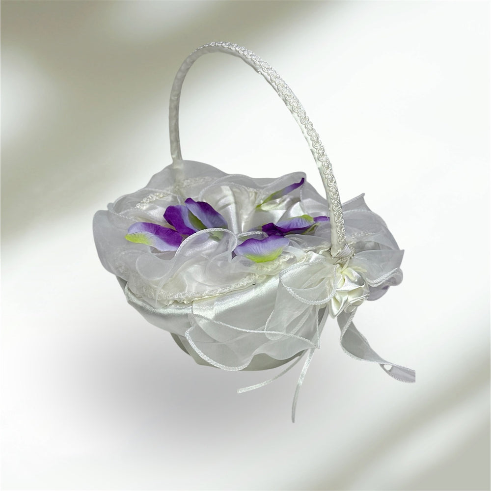 10" X 8" Oval Venetian Flower Girl Basket with Organza Edge White