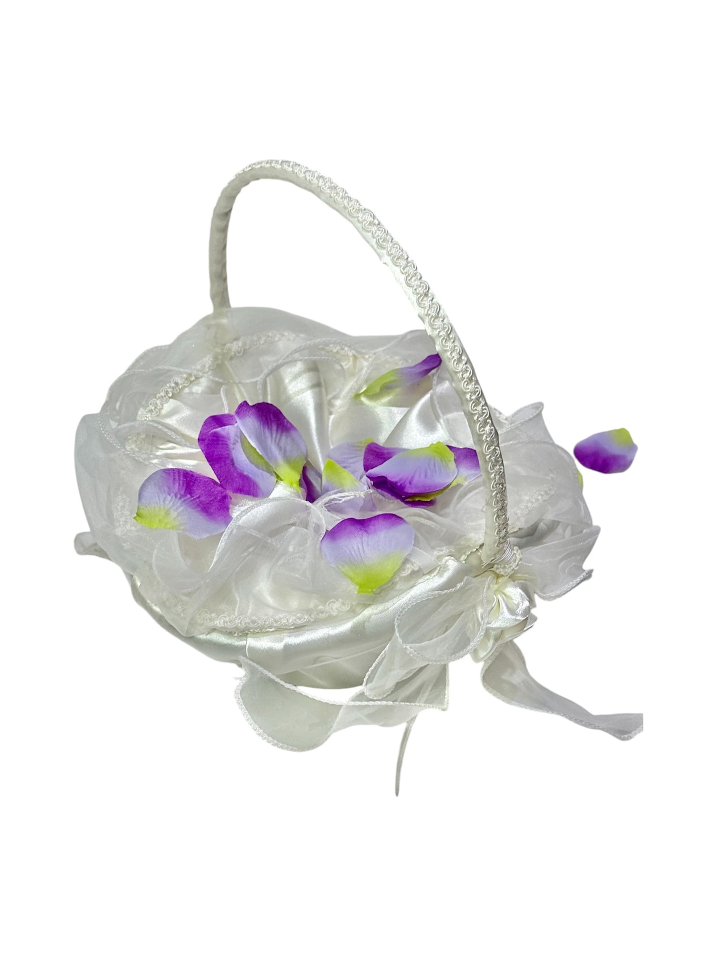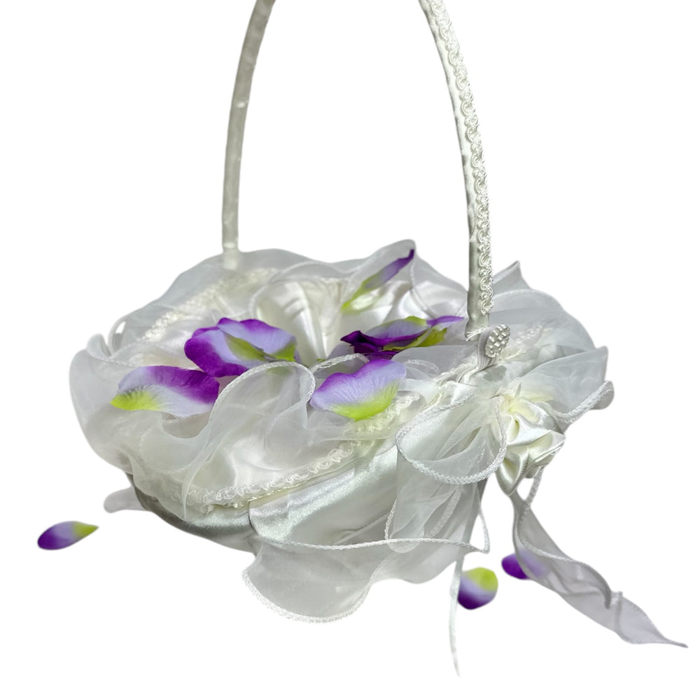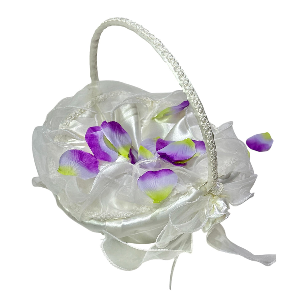 10" X 8" Oval Venetian Flower Girl Basket with Organza Edge Ivory