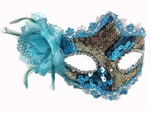 Handmade Blue Venetian Mask with a Rose