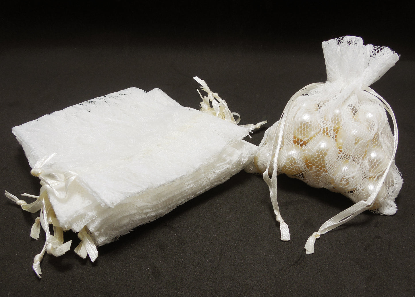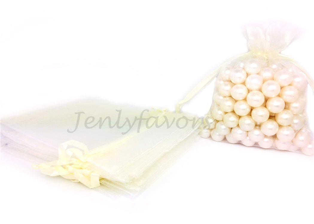 Round Ivory Organza Pouches Round Cut (24 Pieces)