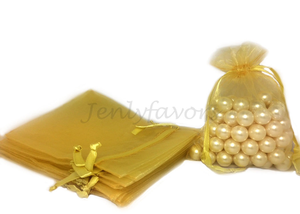 Round Gold Organza Pouches Round Cut (24 Pieces)