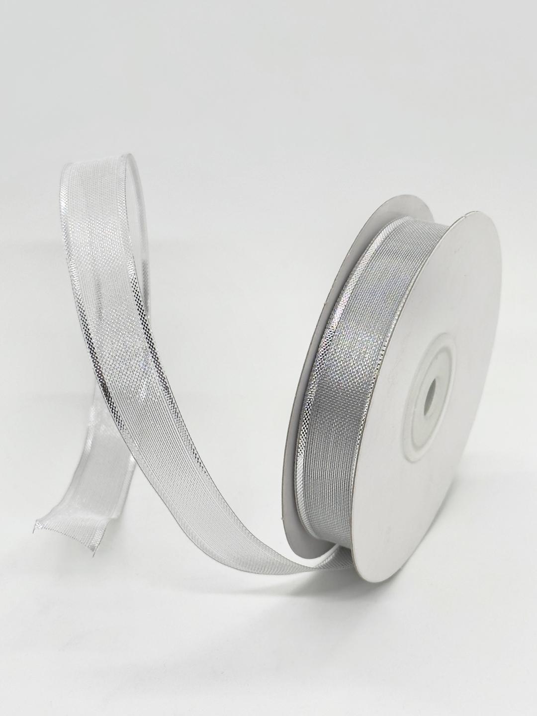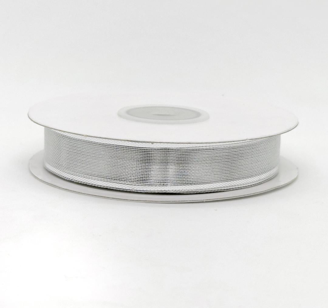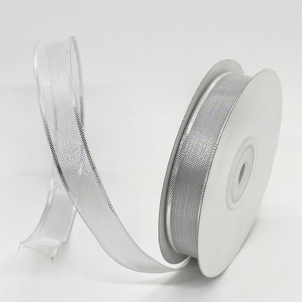 5/8" Metallic Nylon Wired Ribbon Silver (25 Yards)