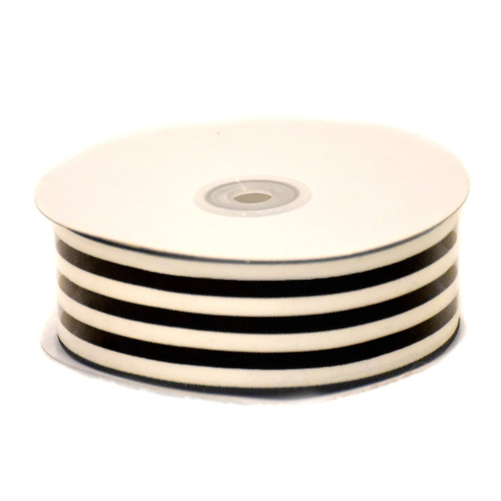 Striped Ribbon in Black and Cream 1.5 Inch x 25 Yards