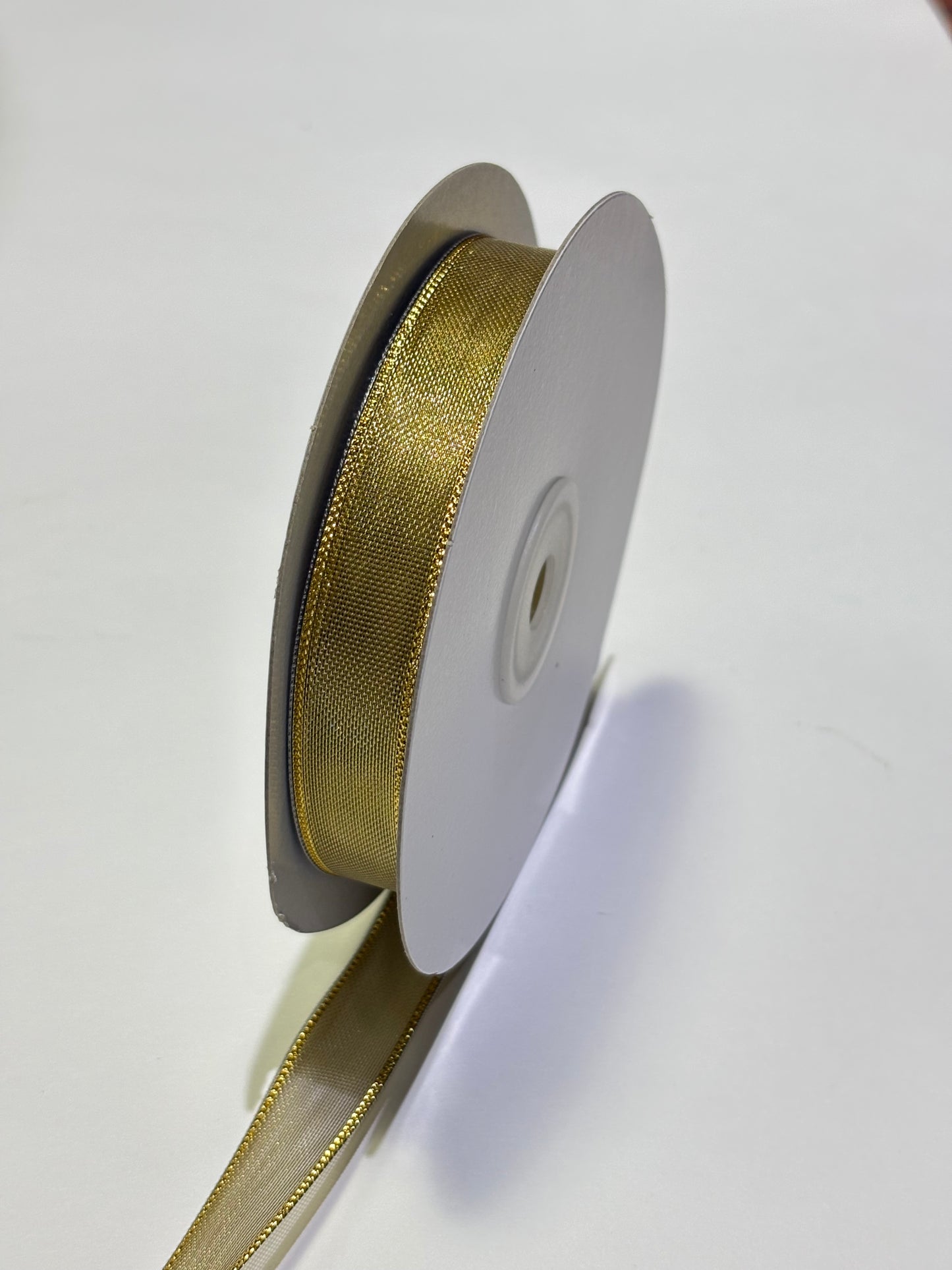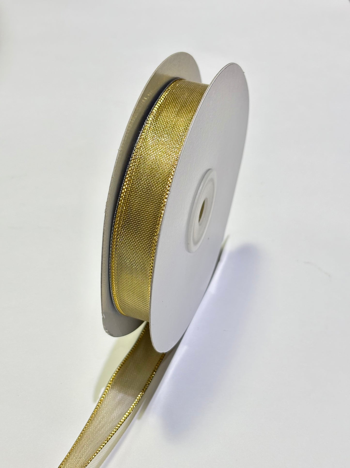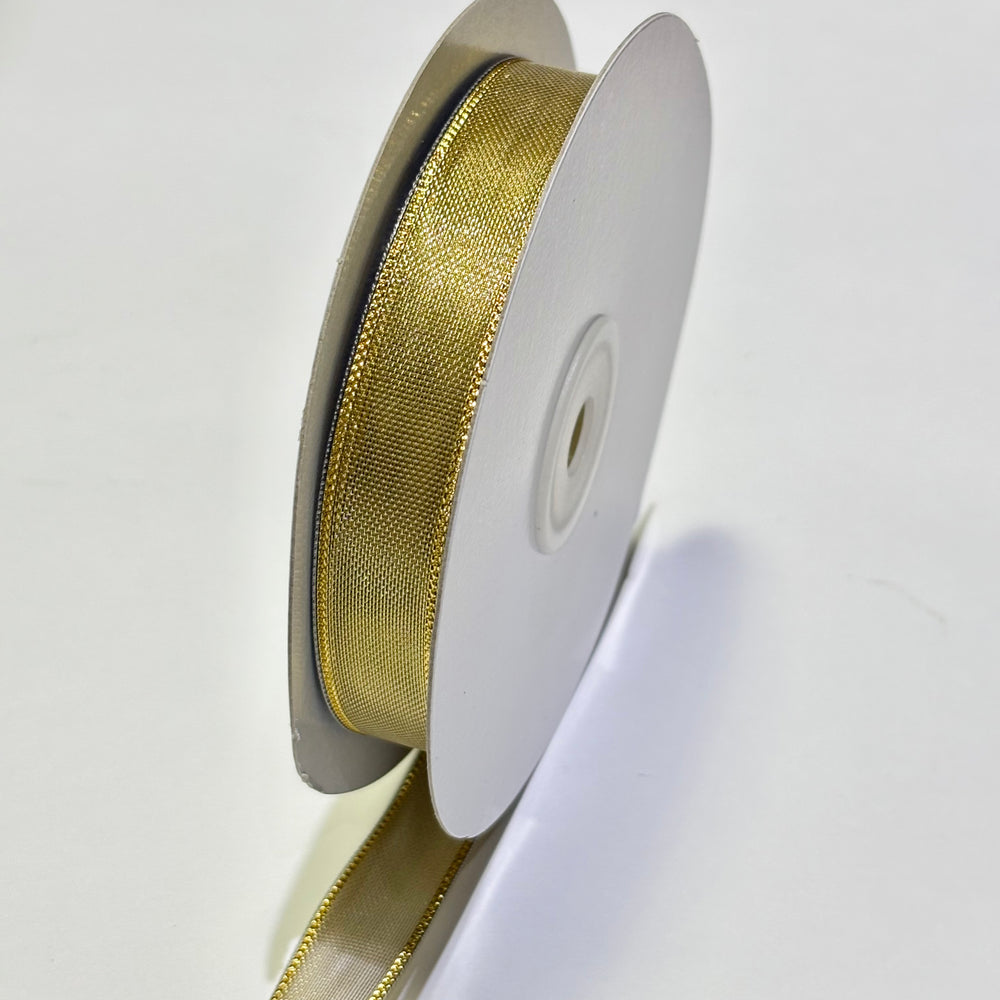 5/8" Metallic Nylon Wired Ribbon Gold (25 Yards)