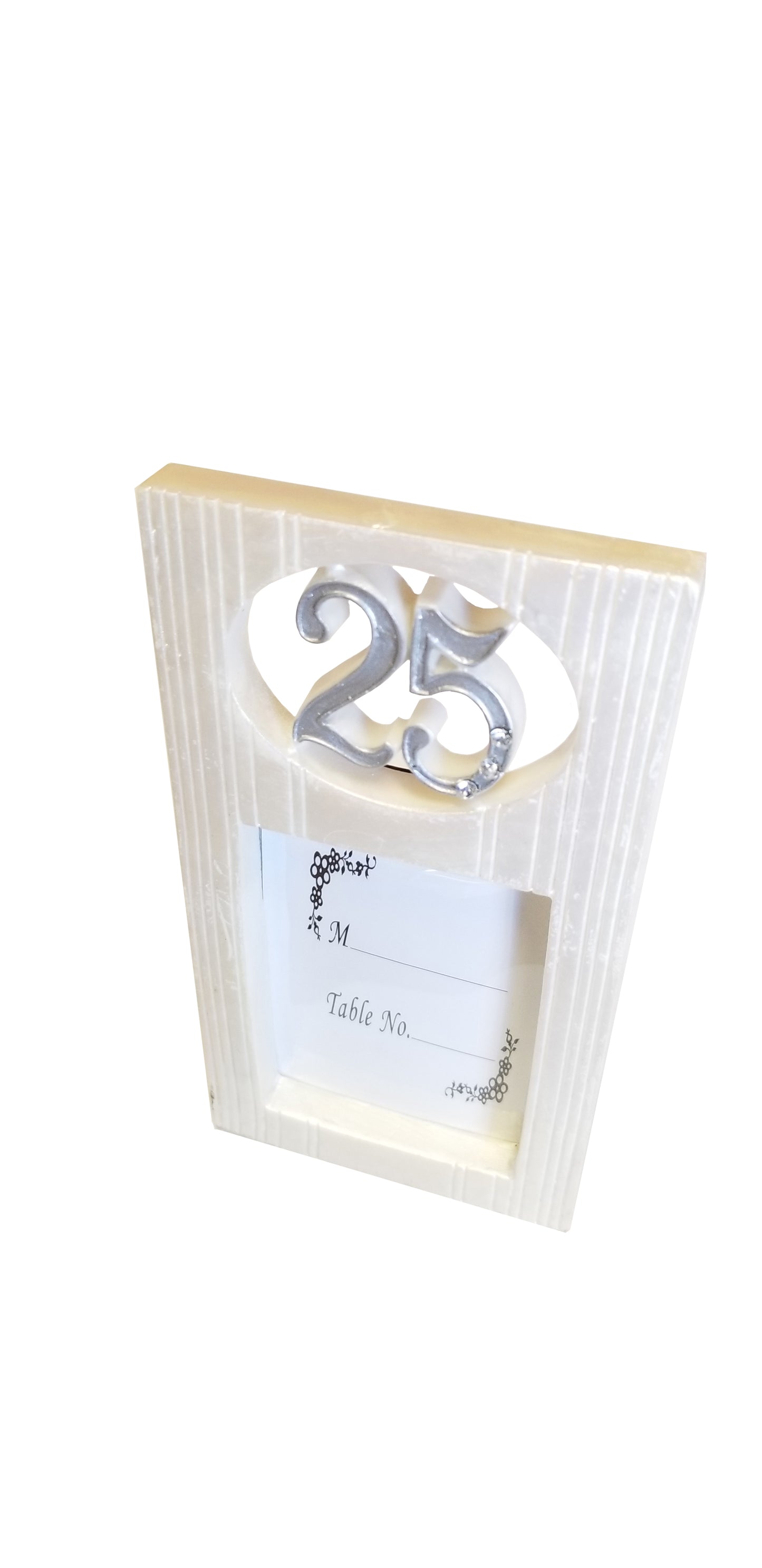 Celebrate your 25th with this picture frame should be a good idea. It is finished with a silver sign of 25, which is decorated with some crystals. The whole picture frame is beautiful and elegant; it should make you have a good party.
