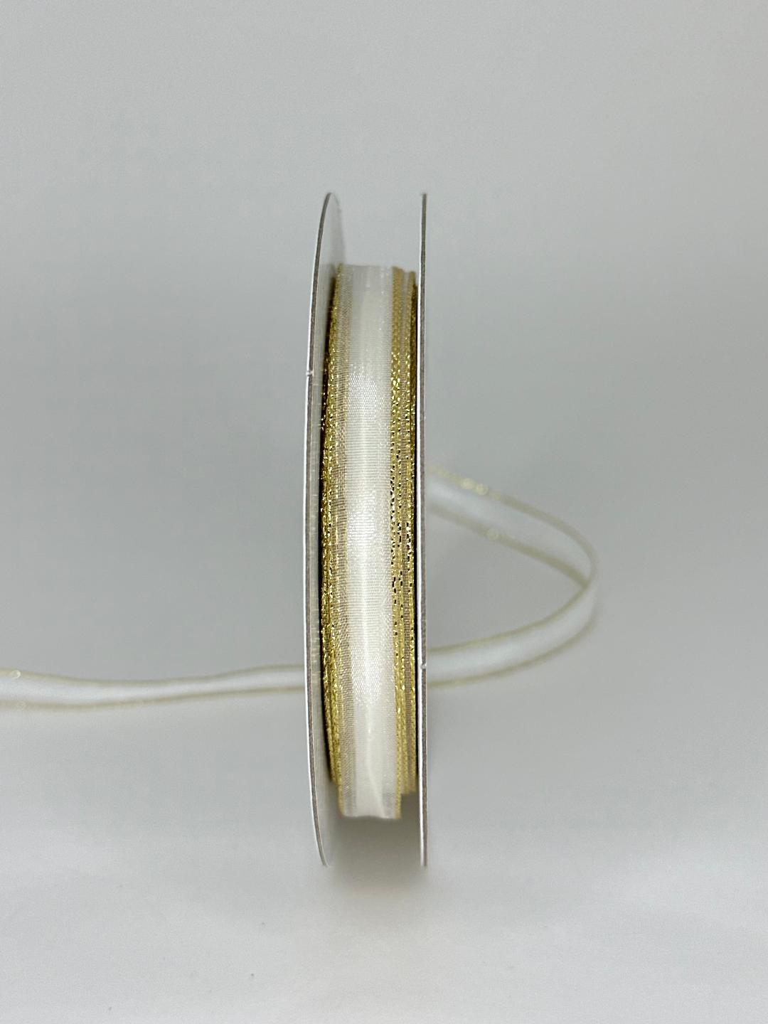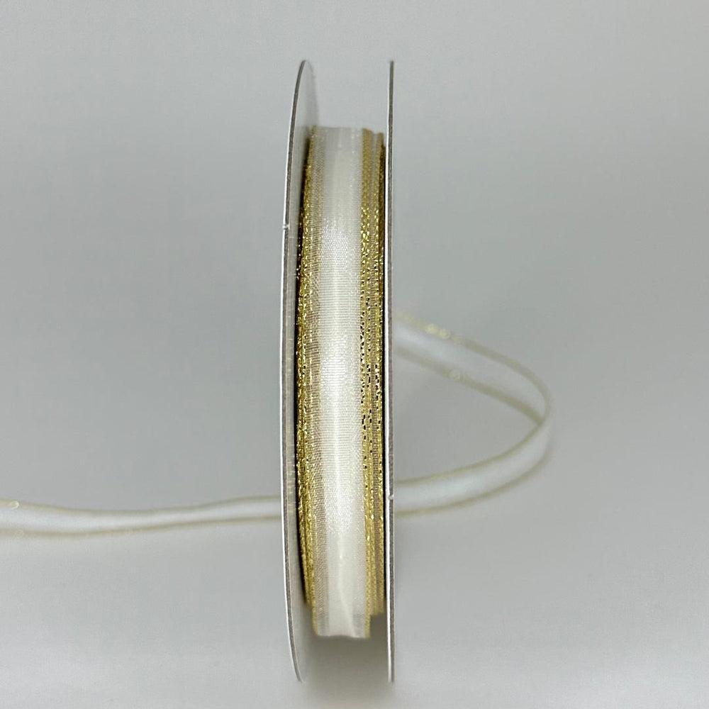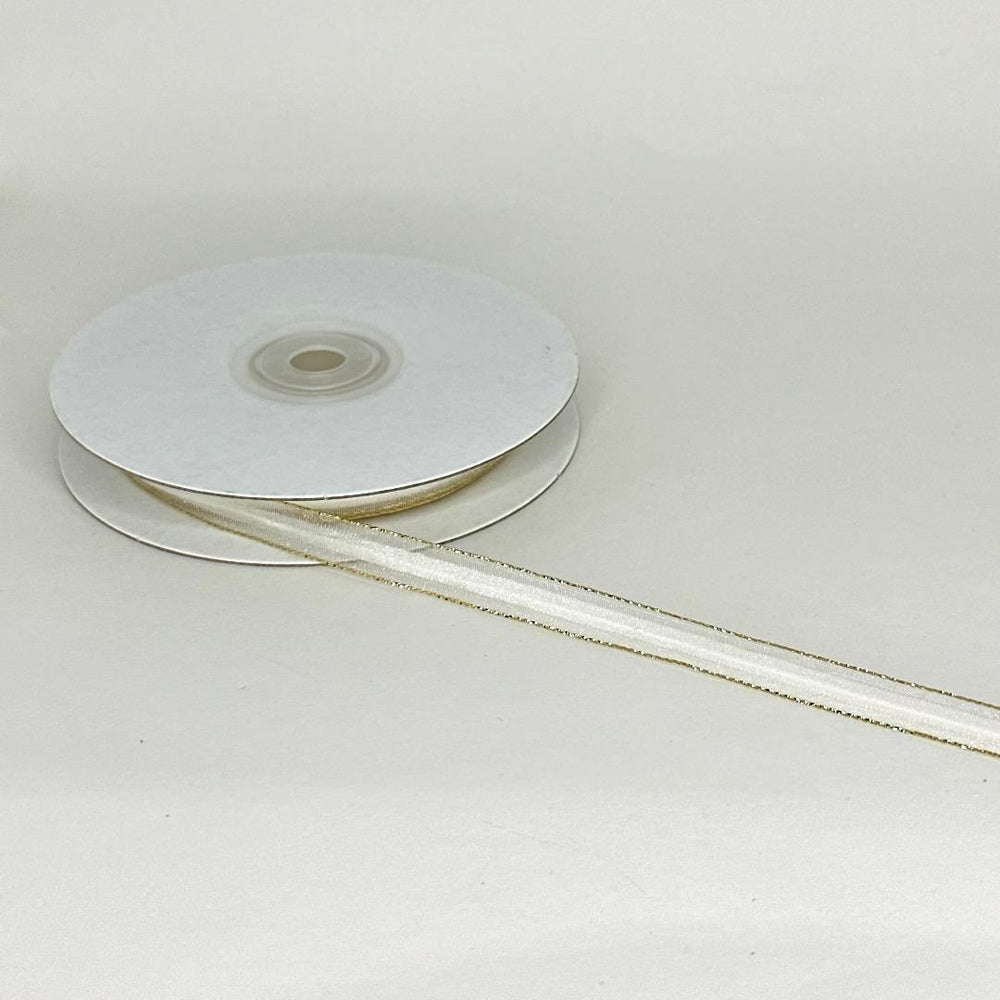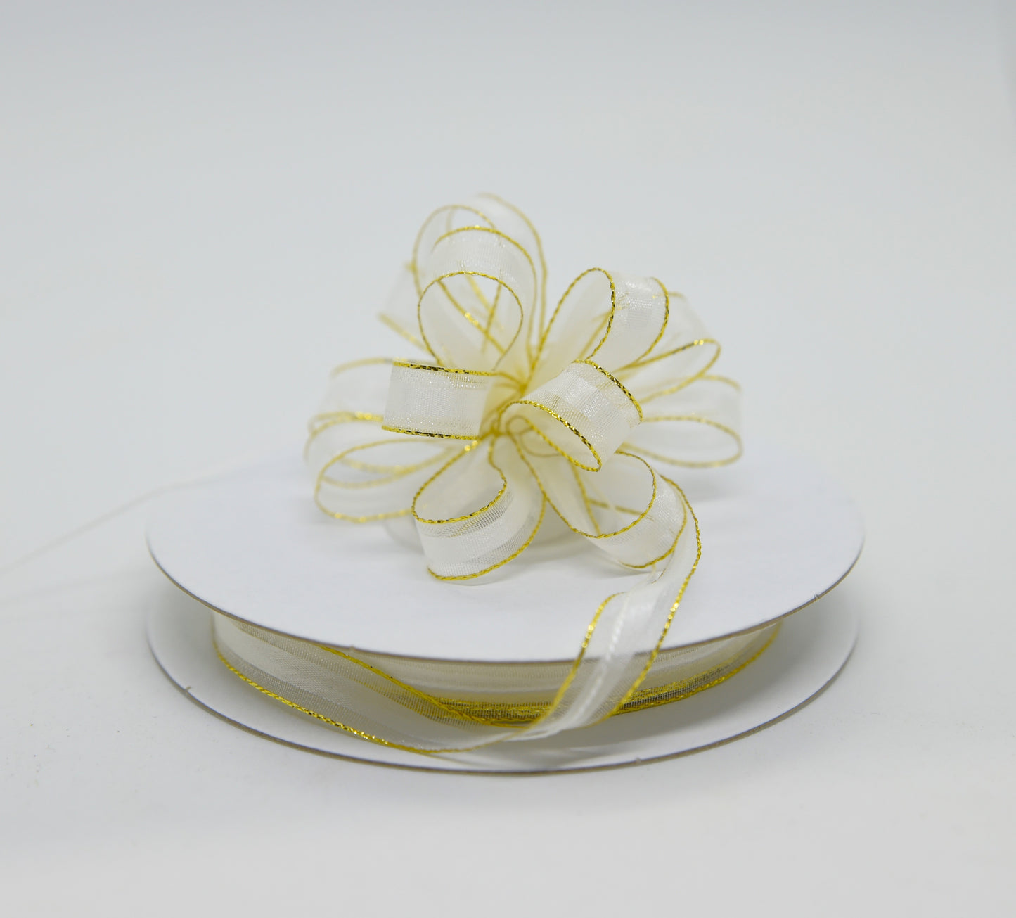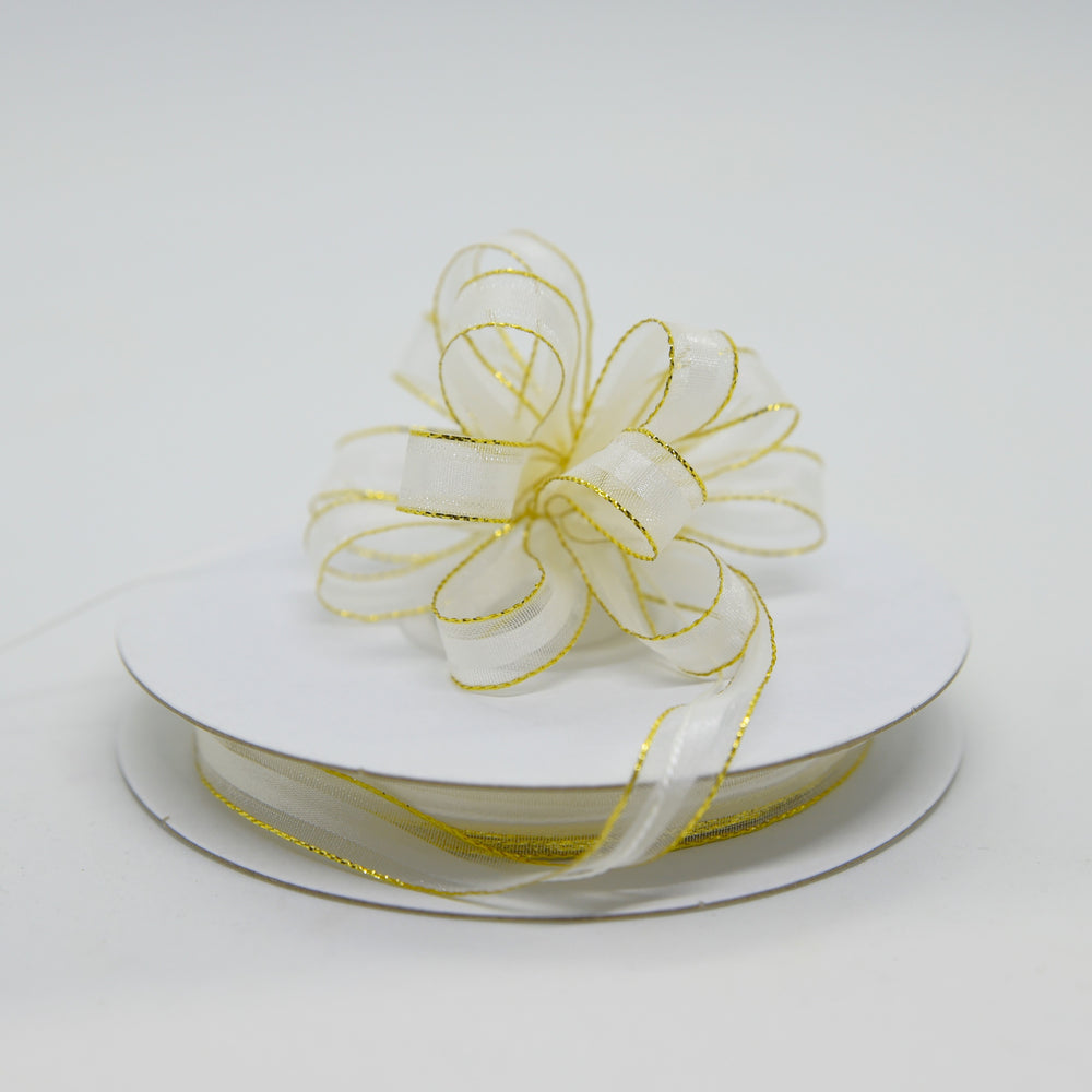 3/8" White Pull Bow Ribbon with Gold Edge (25 yard)