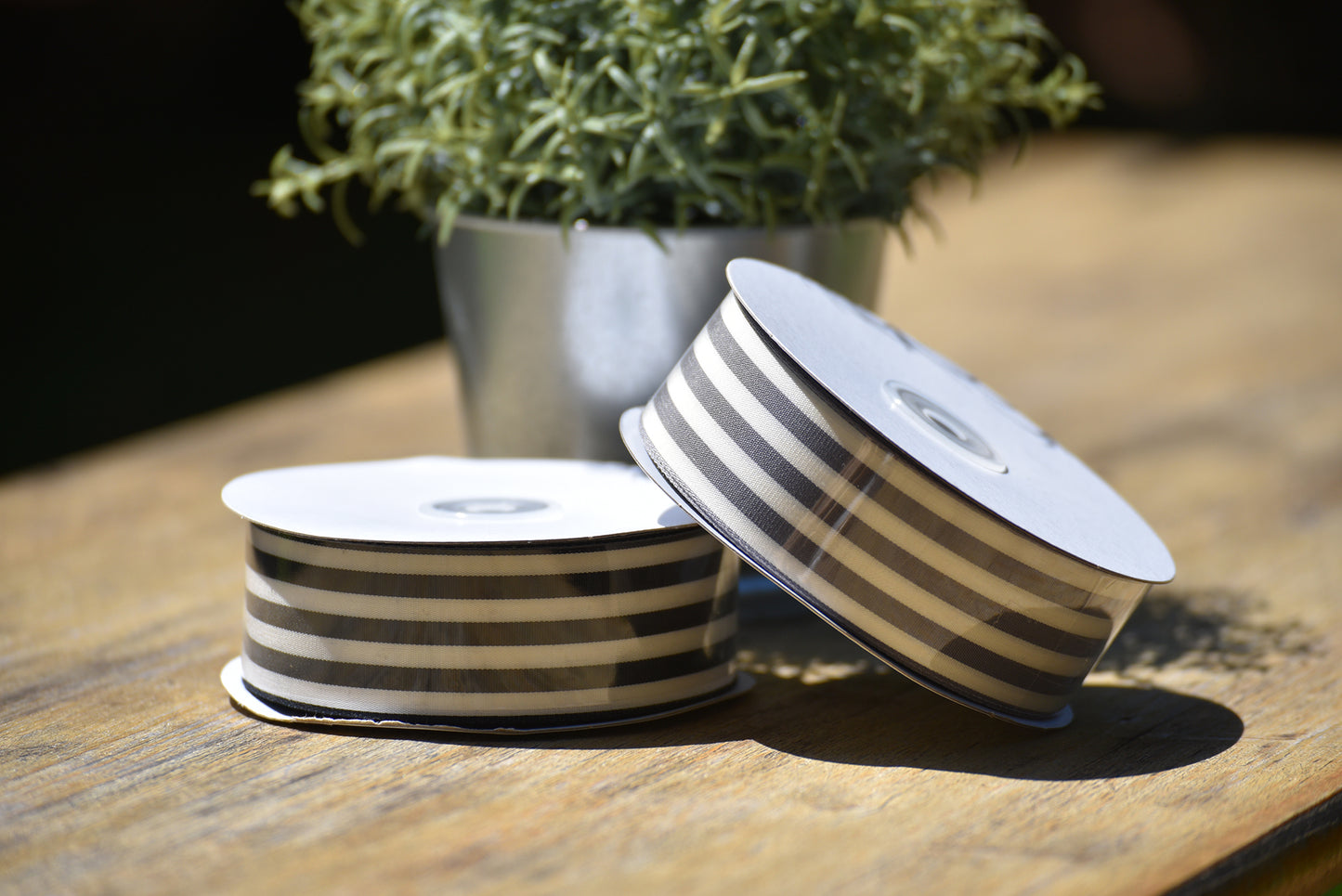 Striped Ribbon in Grey and Cream 1.5 Inch x 25 Yards