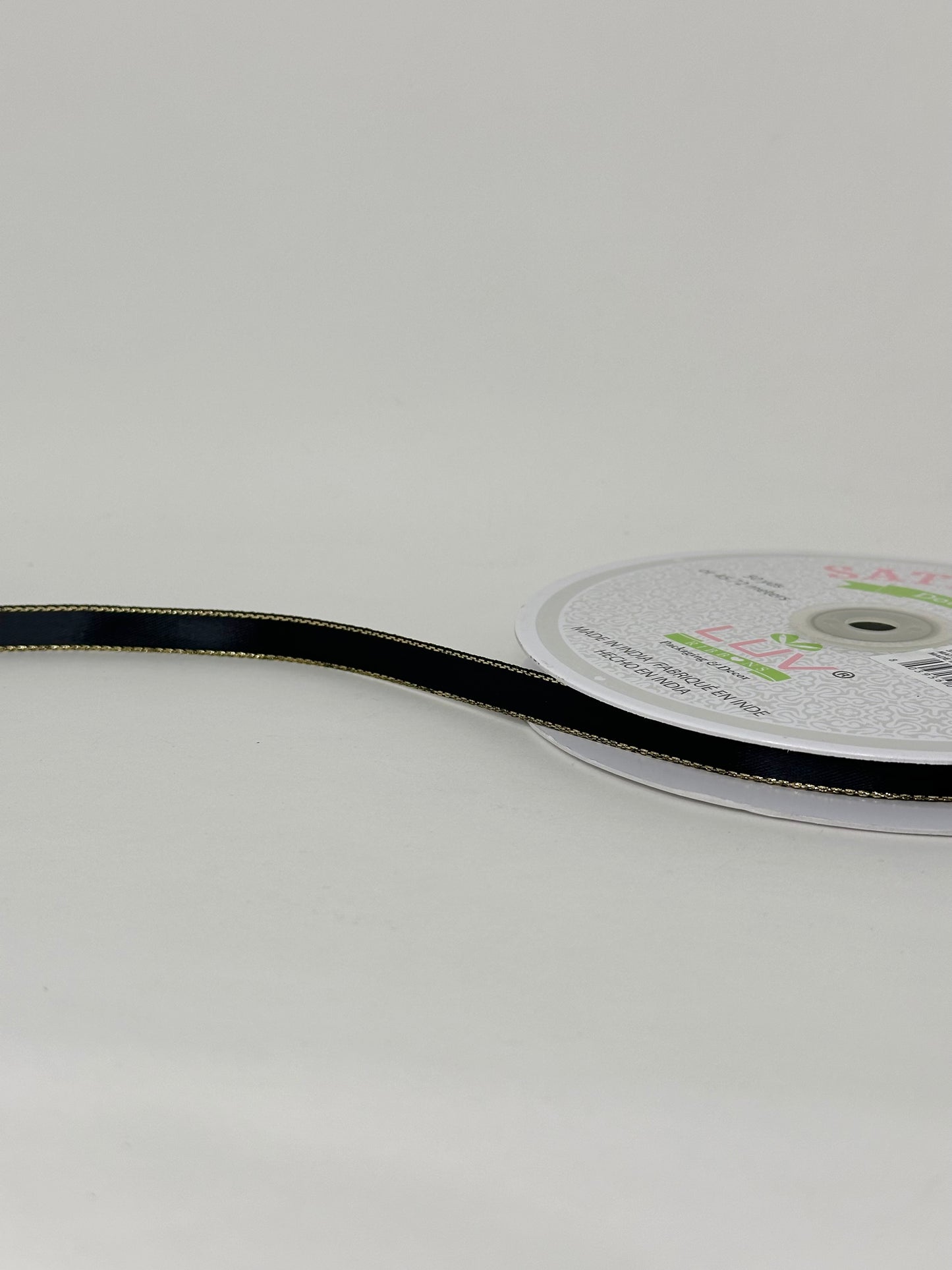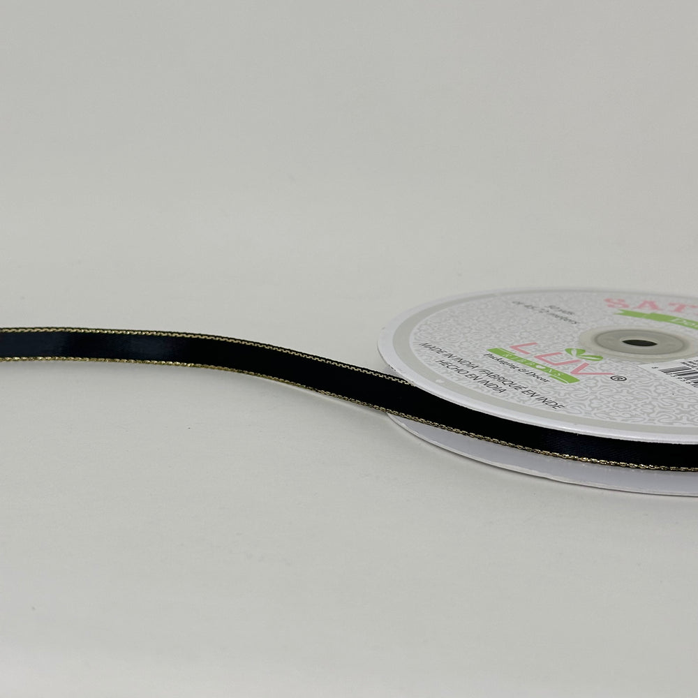 3/8" Double Face Satin Ribbon with Gold Edge Black 50 Yards
