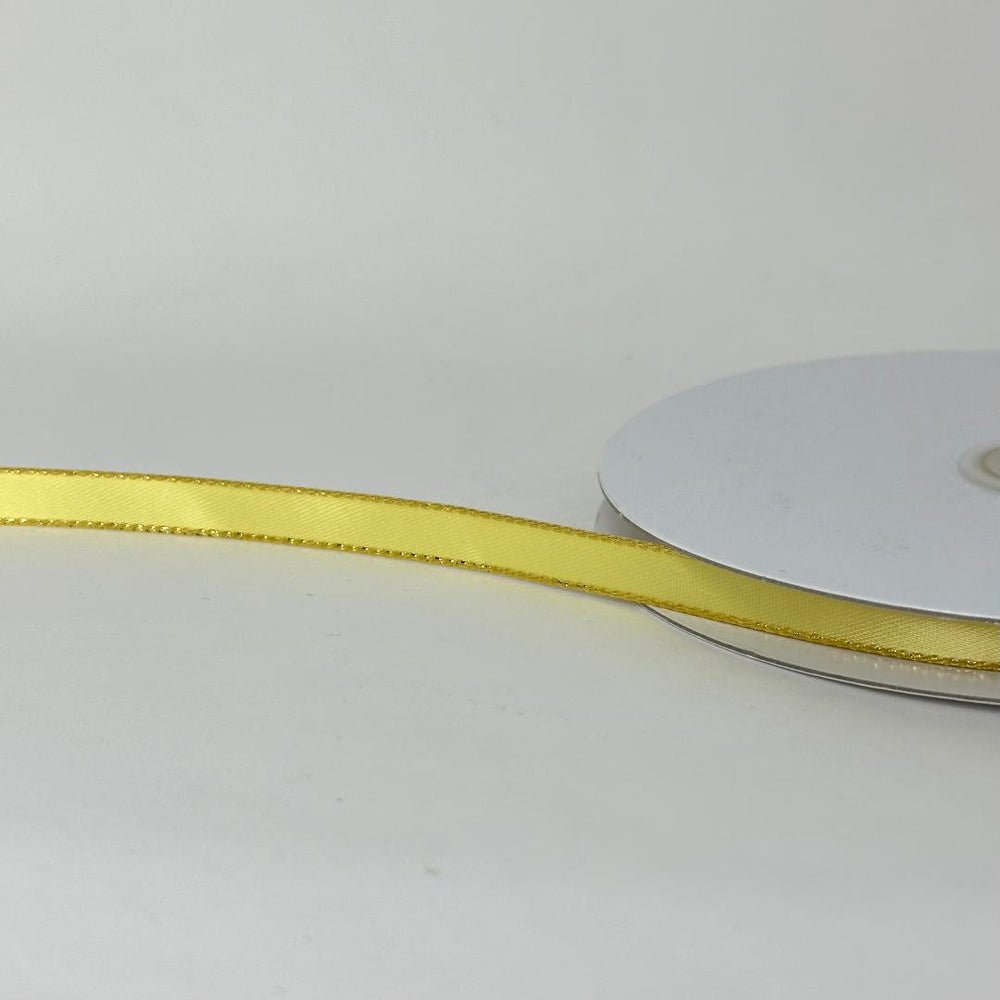3/8" Double Face Satin Ribbon with Gold Edge Canary Yellow 50 Yards