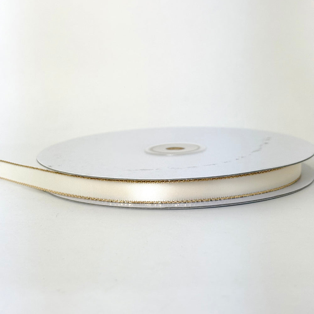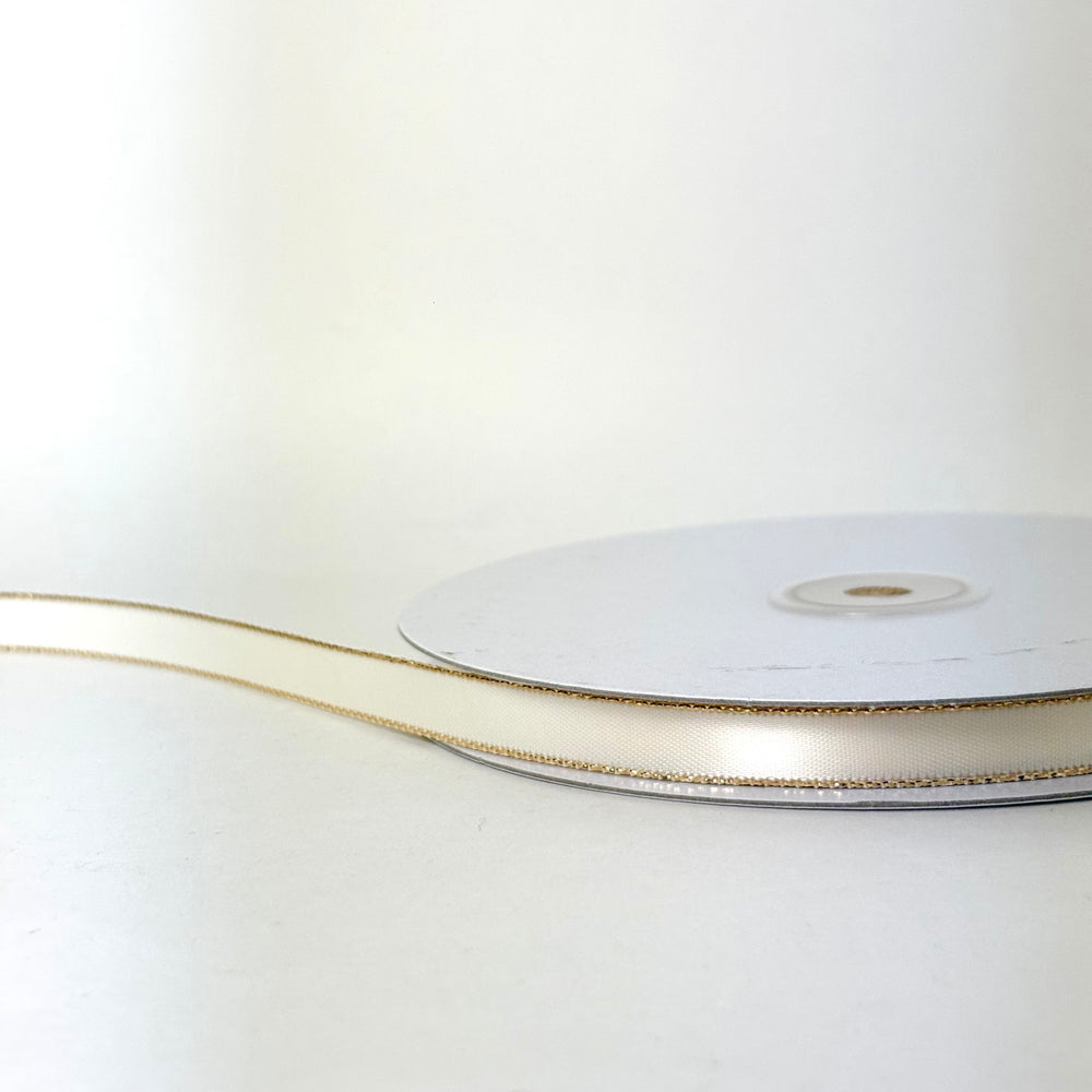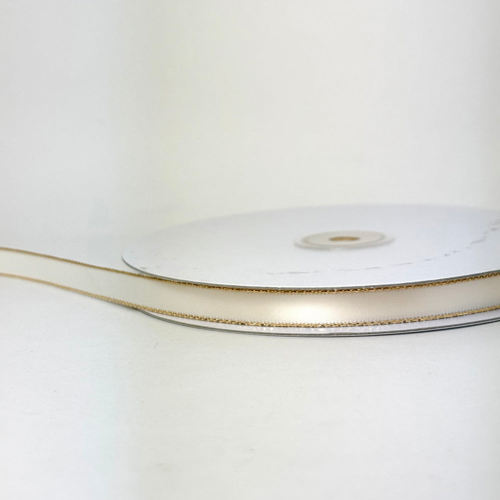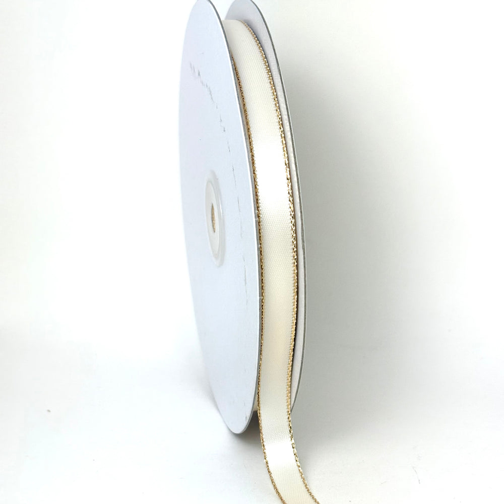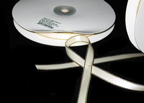 3/8" Double Face Satin Ribbon with Gold Edge Ivory 50 Yards