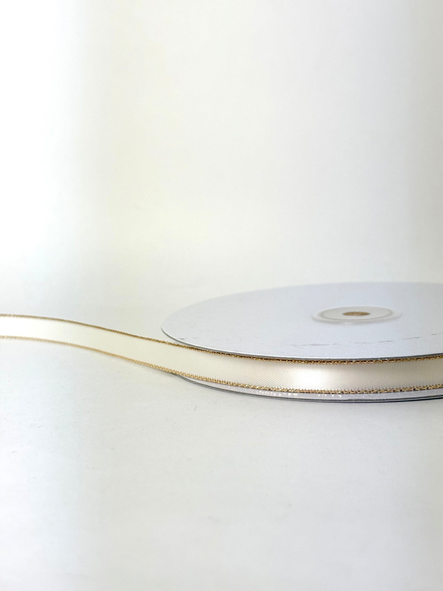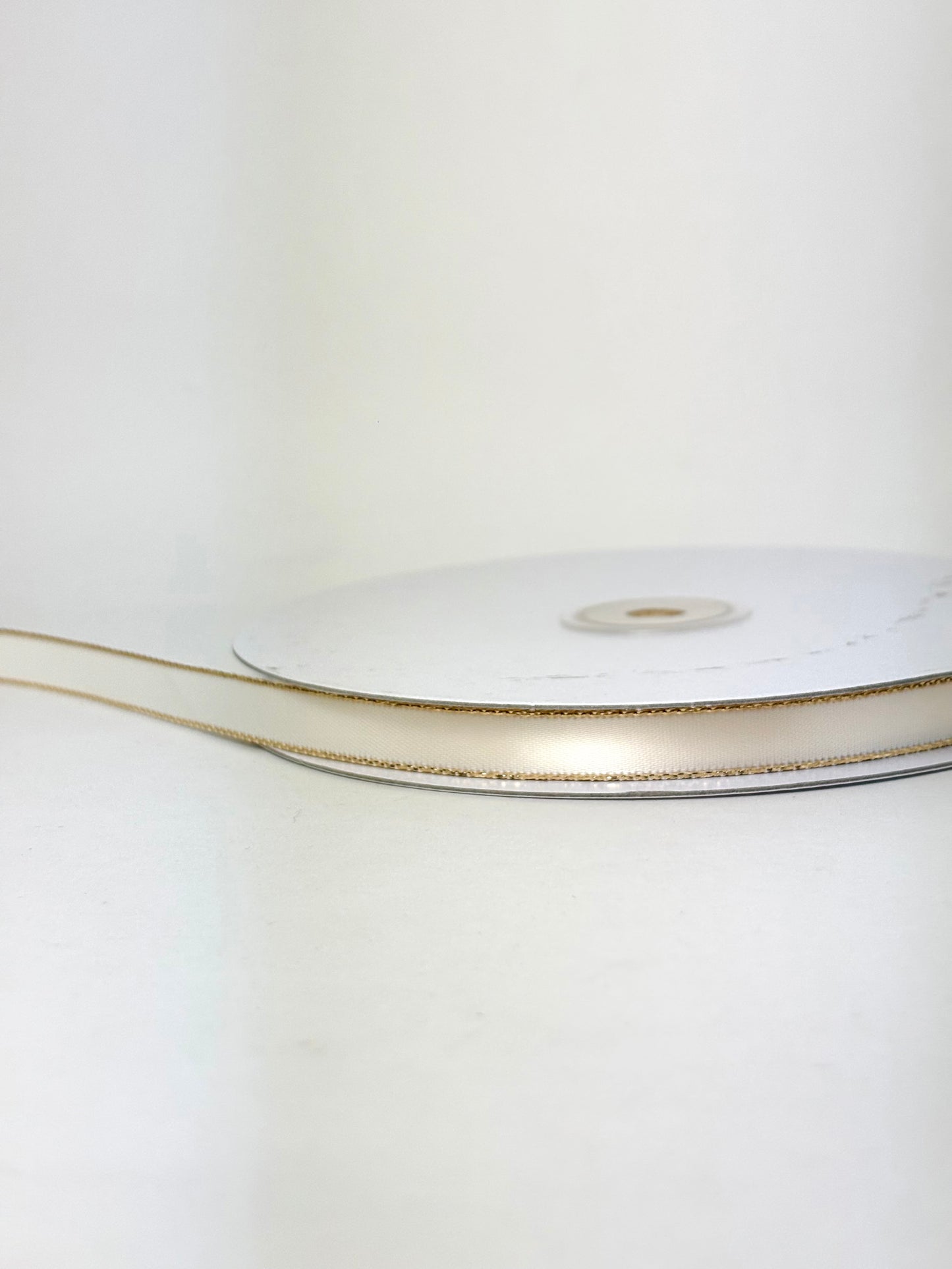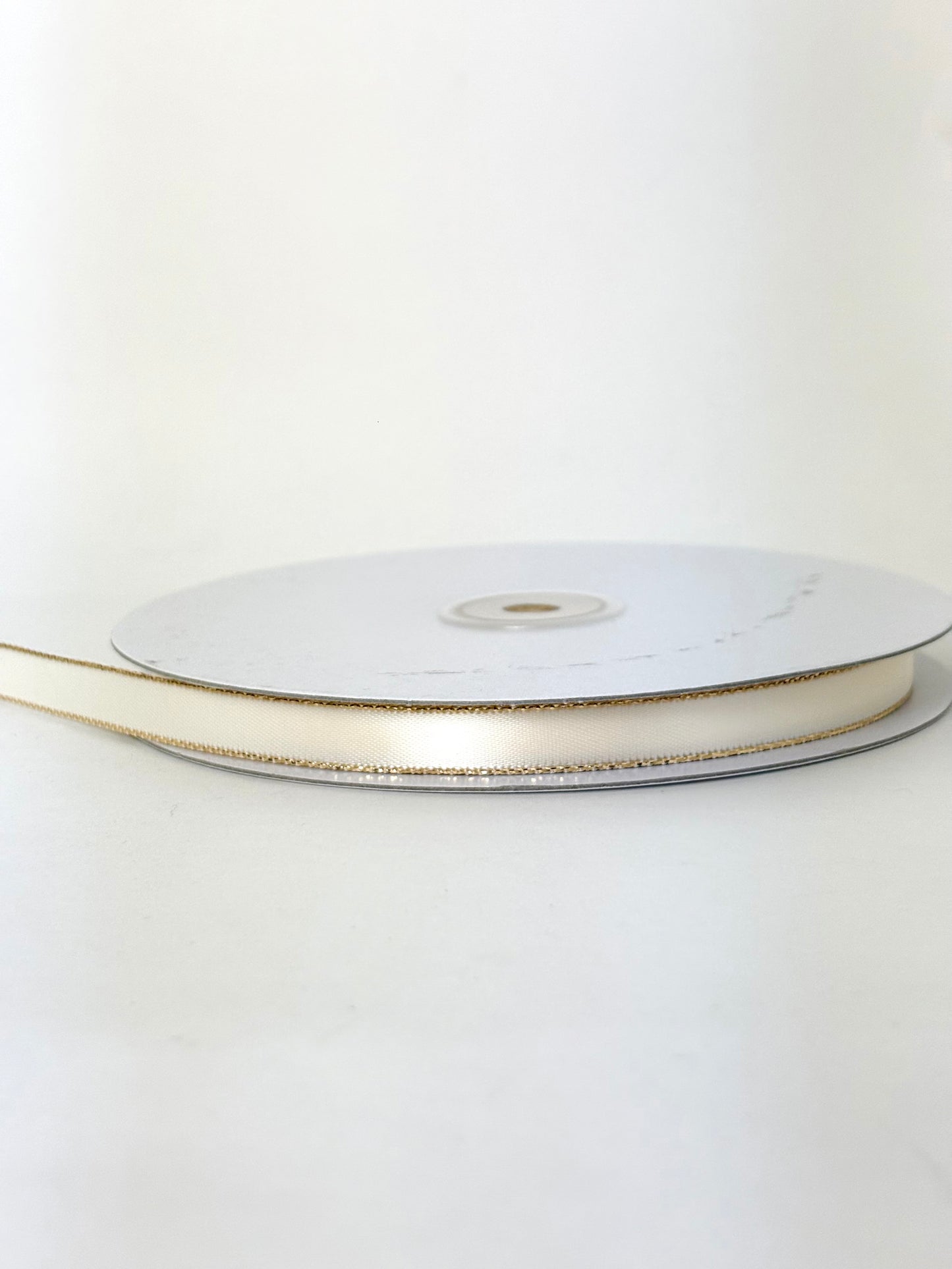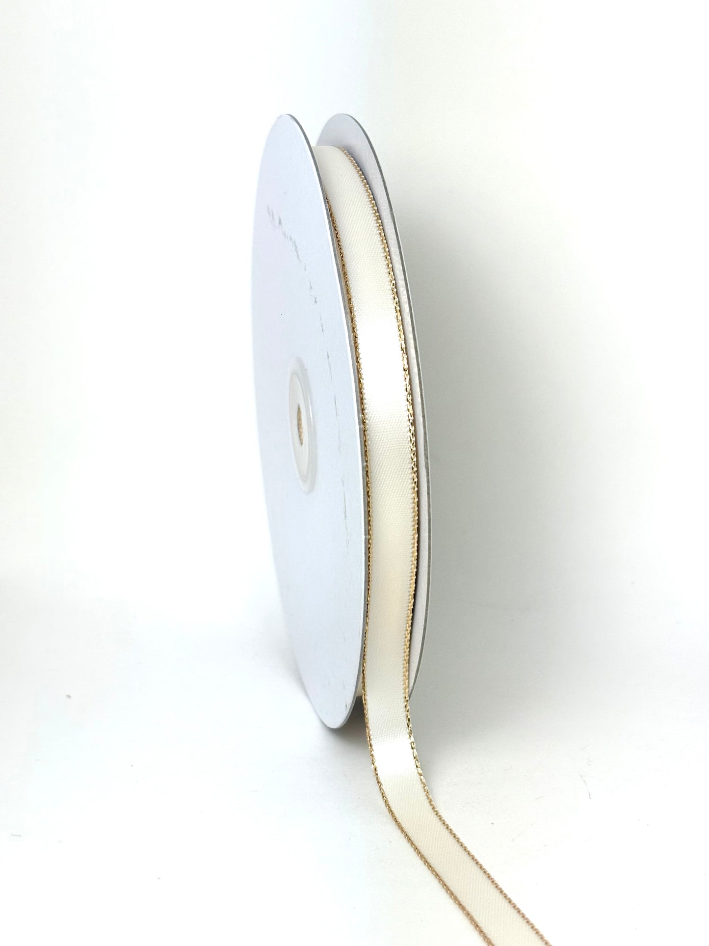 3/8" Double Face Satin Ribbon with Gold Edge Ivory 50 Yards