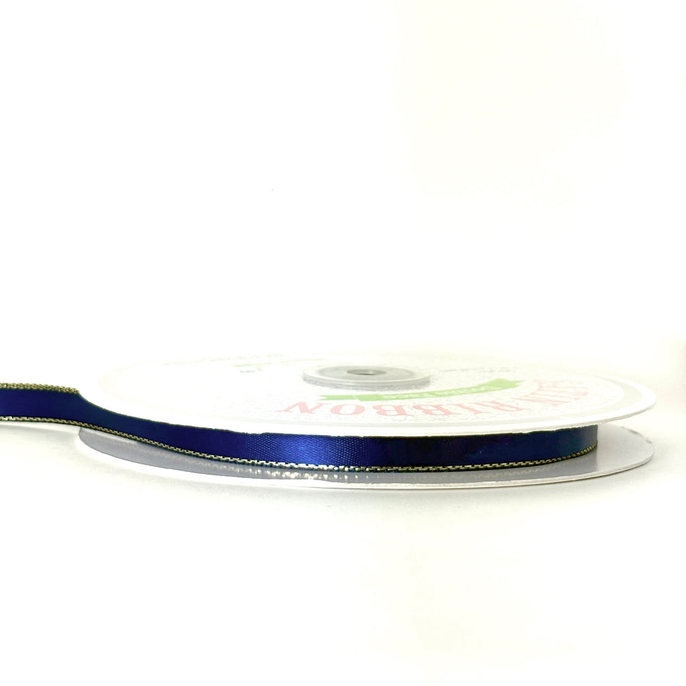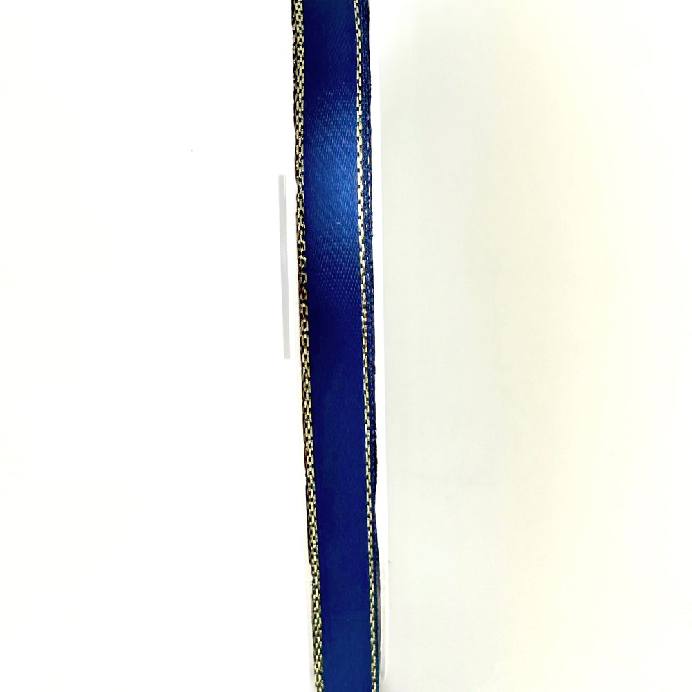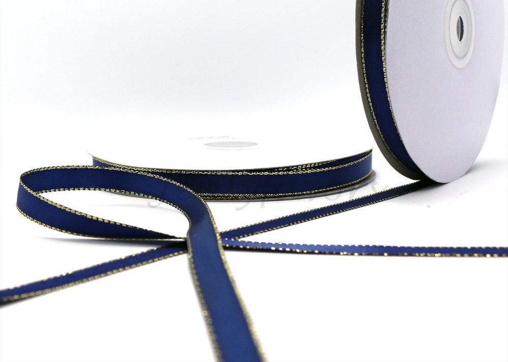 3/8" Double Face Satin Ribbon with Gold Edge Navy Blue 50 Yards
