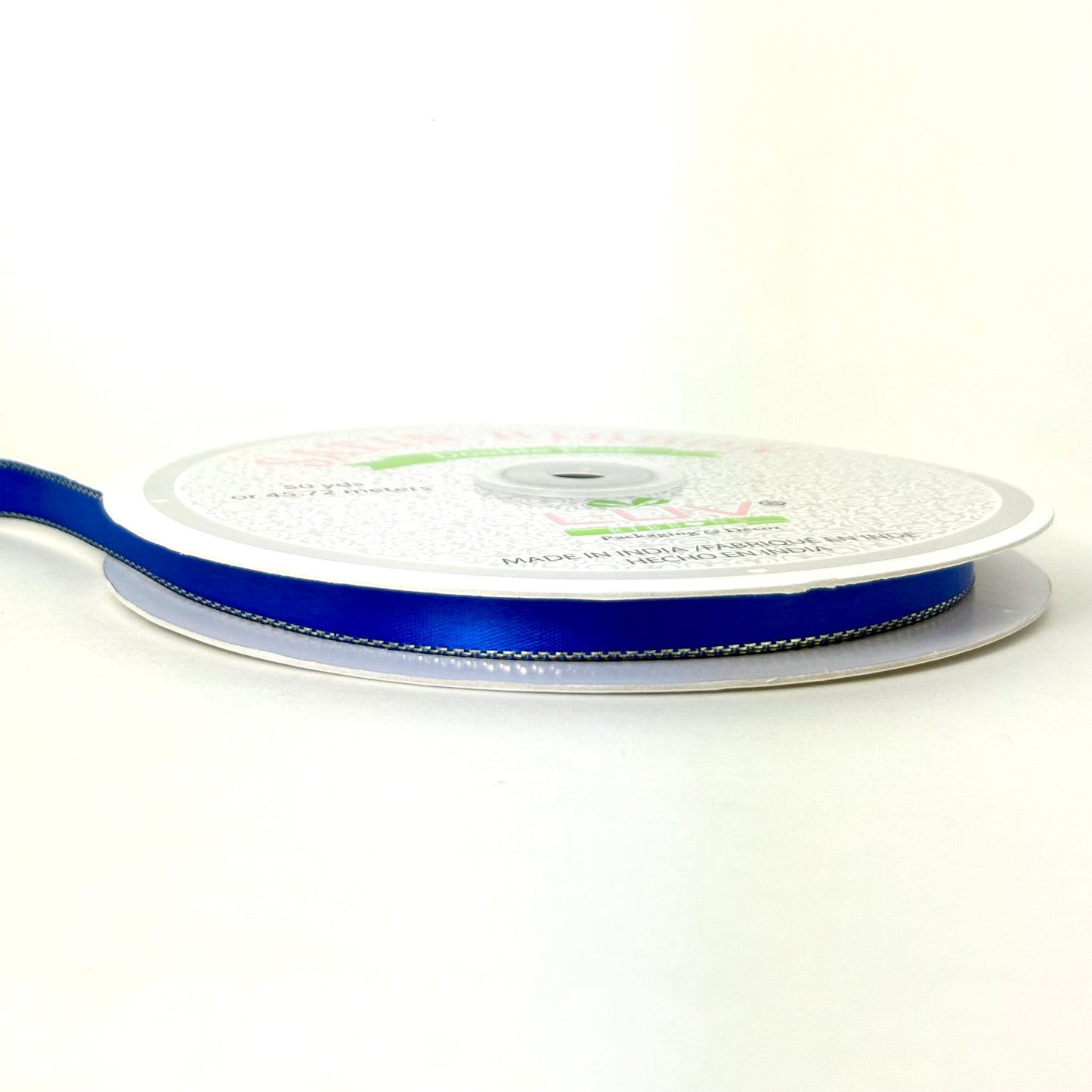 3/8" Double Face Satin Ribbon with Gold Edge Royal Blue 50 Yards