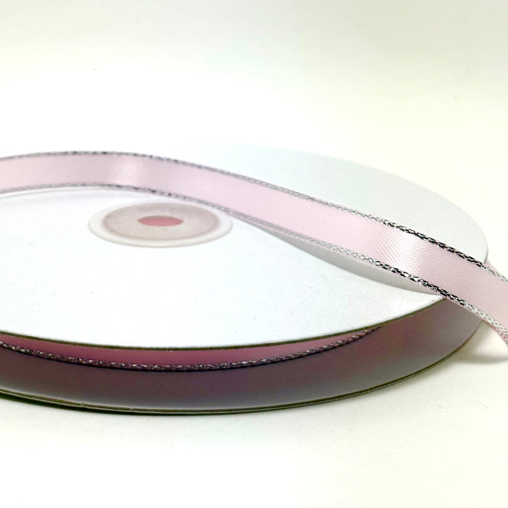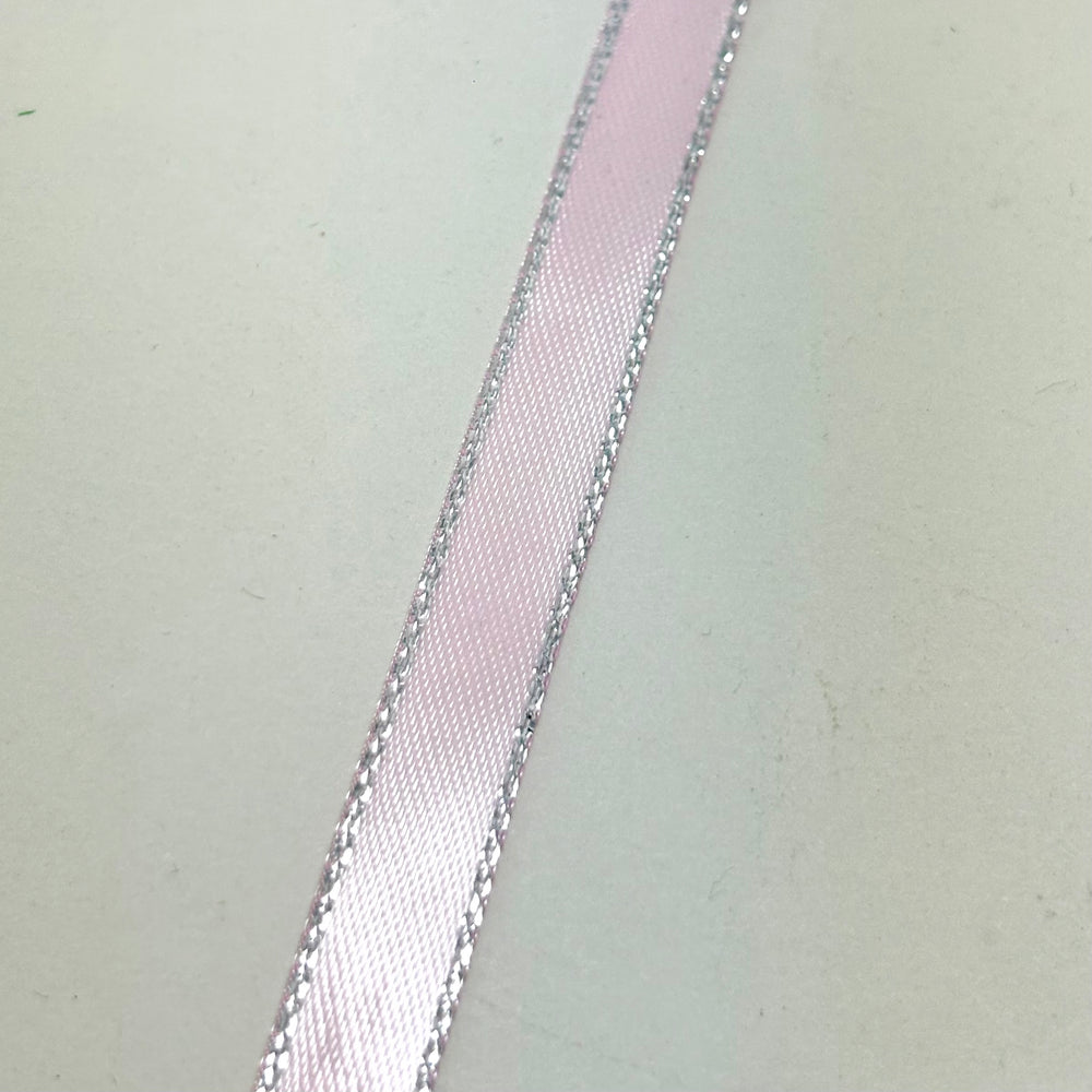 3/8" Double Face Satin Ribbon with Silver Edge Pink 50 Yards