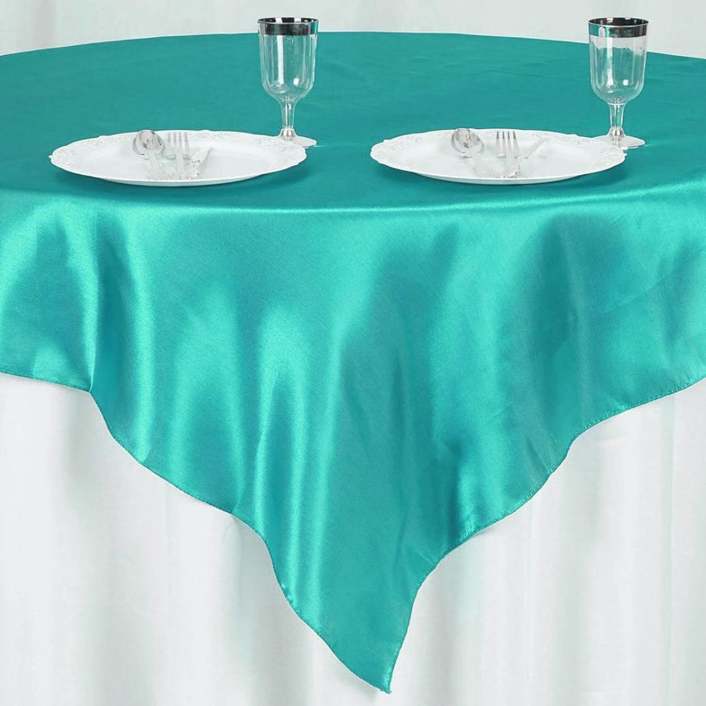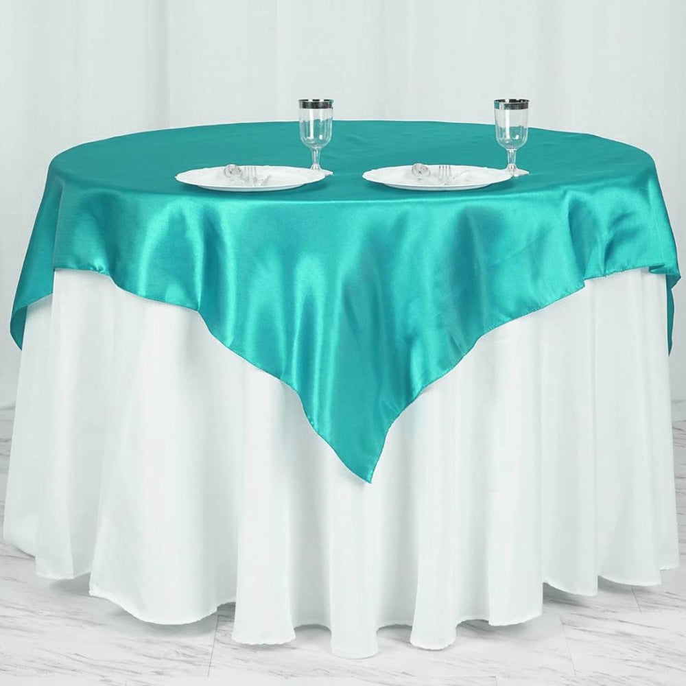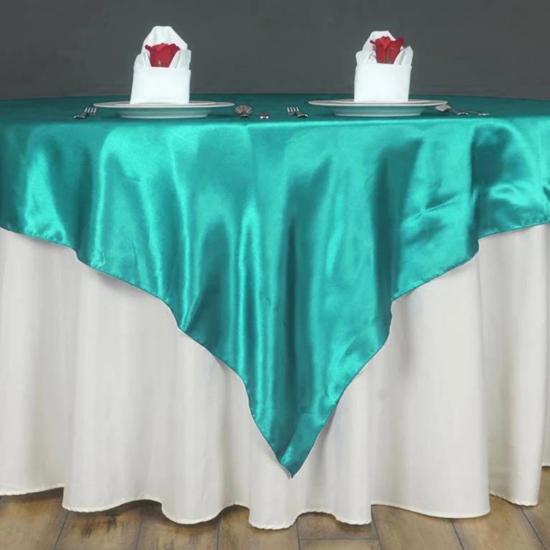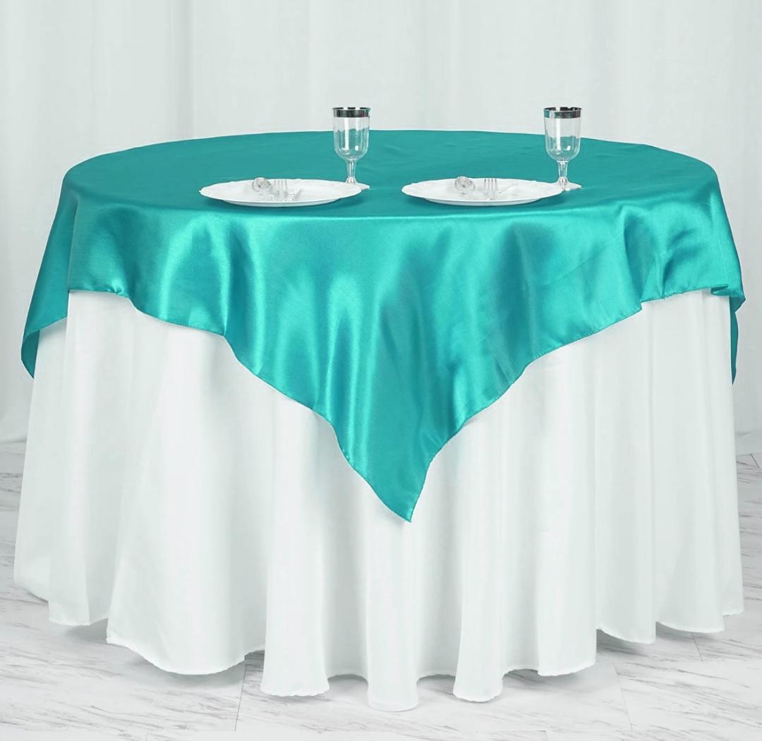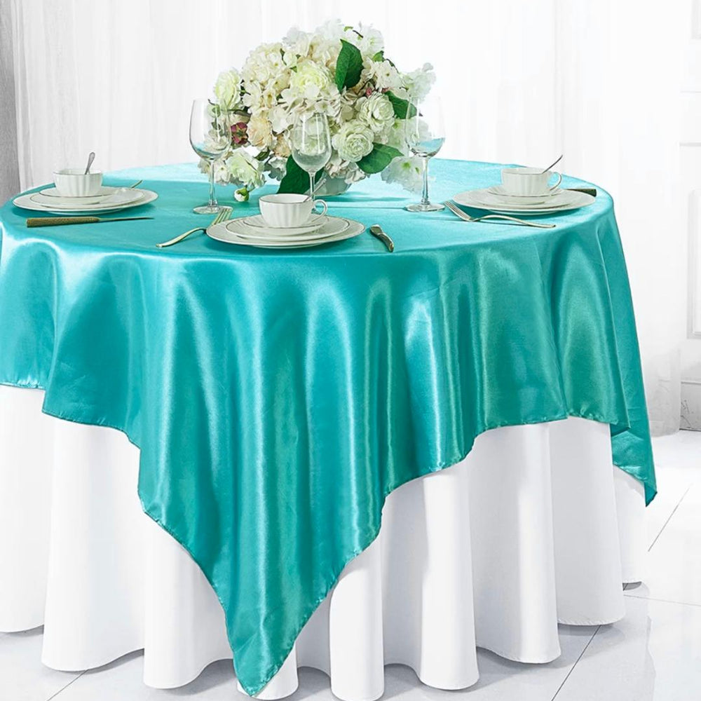 Deep Tiffany blue Satin Table Overlay 72" X 72" Square(1 Piece)