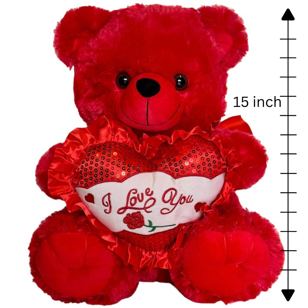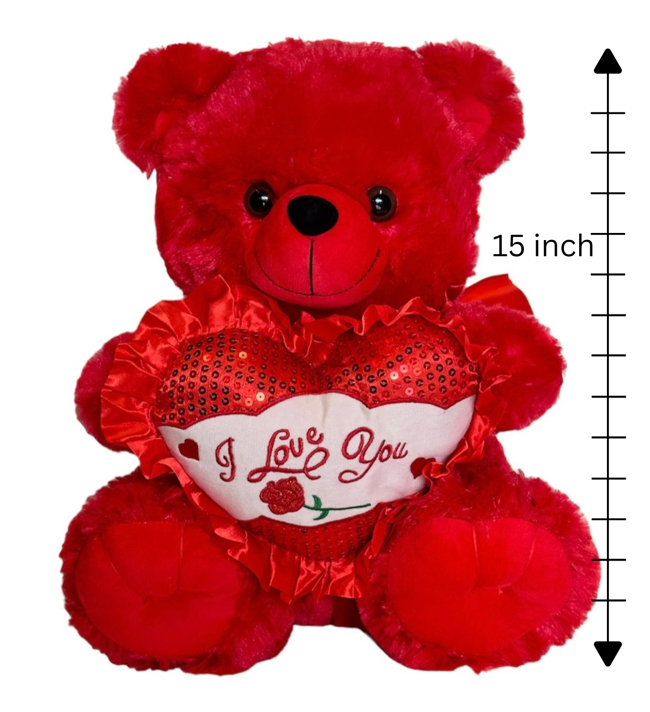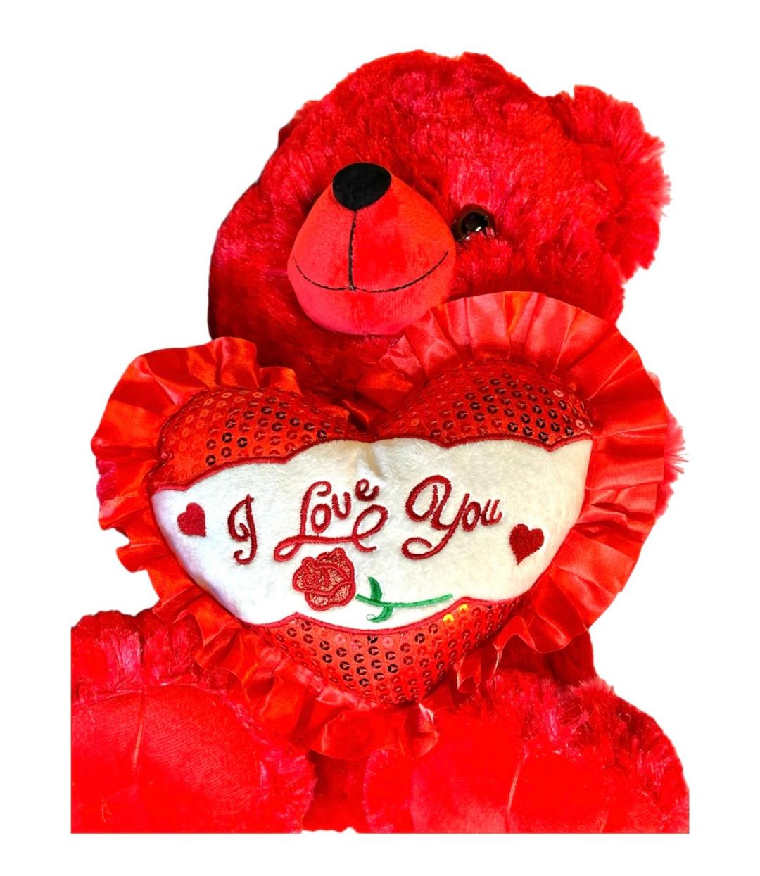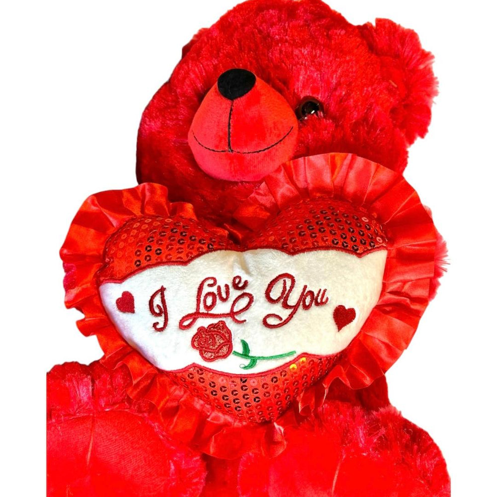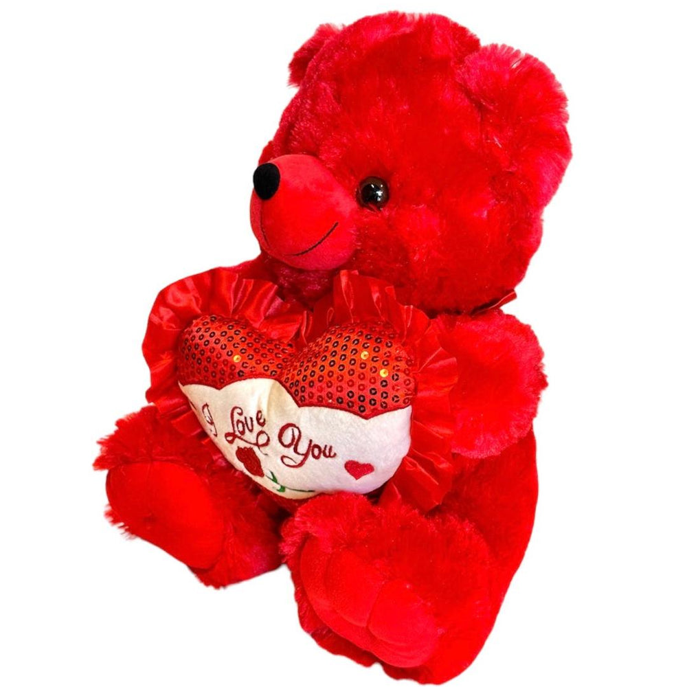 15" Musical Valentine Bear Red with I Love You Heart and Light Up Cheek (1 Piece)