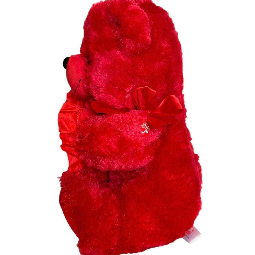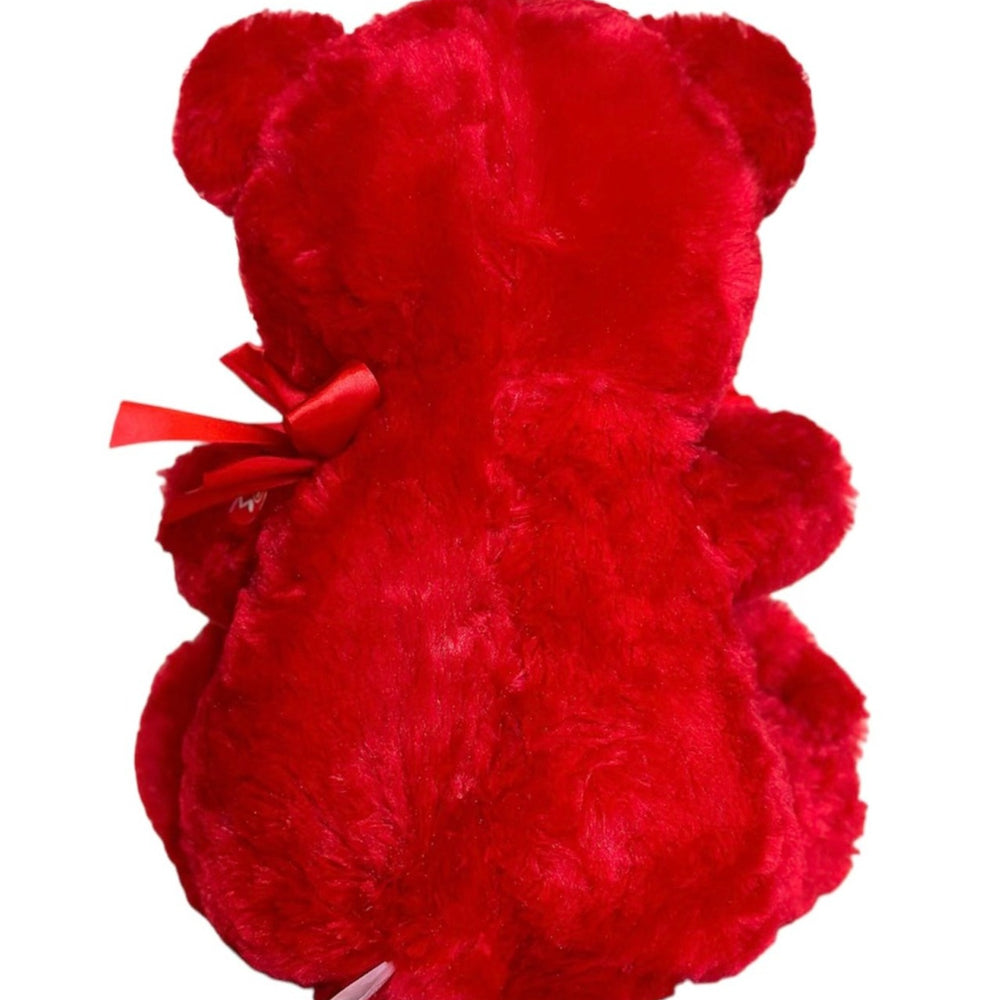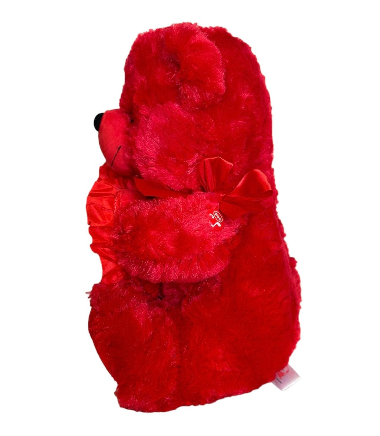 Expertly crafted with soft fur and a heart that reads "I Love You", our 15" red musical bear is the ideal Valentine's Day gift. In sitting position, it stands at a height of 15 inches and features a glowing, red cheek that lights up as it sings a love song when its paws are pressed.