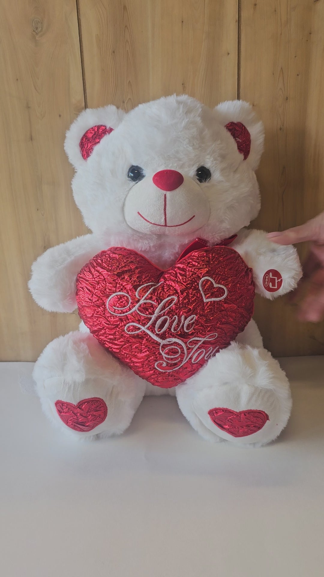 Soft and furry, our 15" white musical singing bear holds a red heart with "I Love You". It is a perfect gift for that special one on Valentine's day.