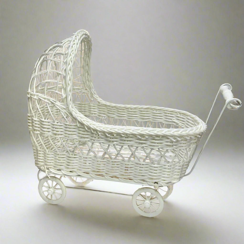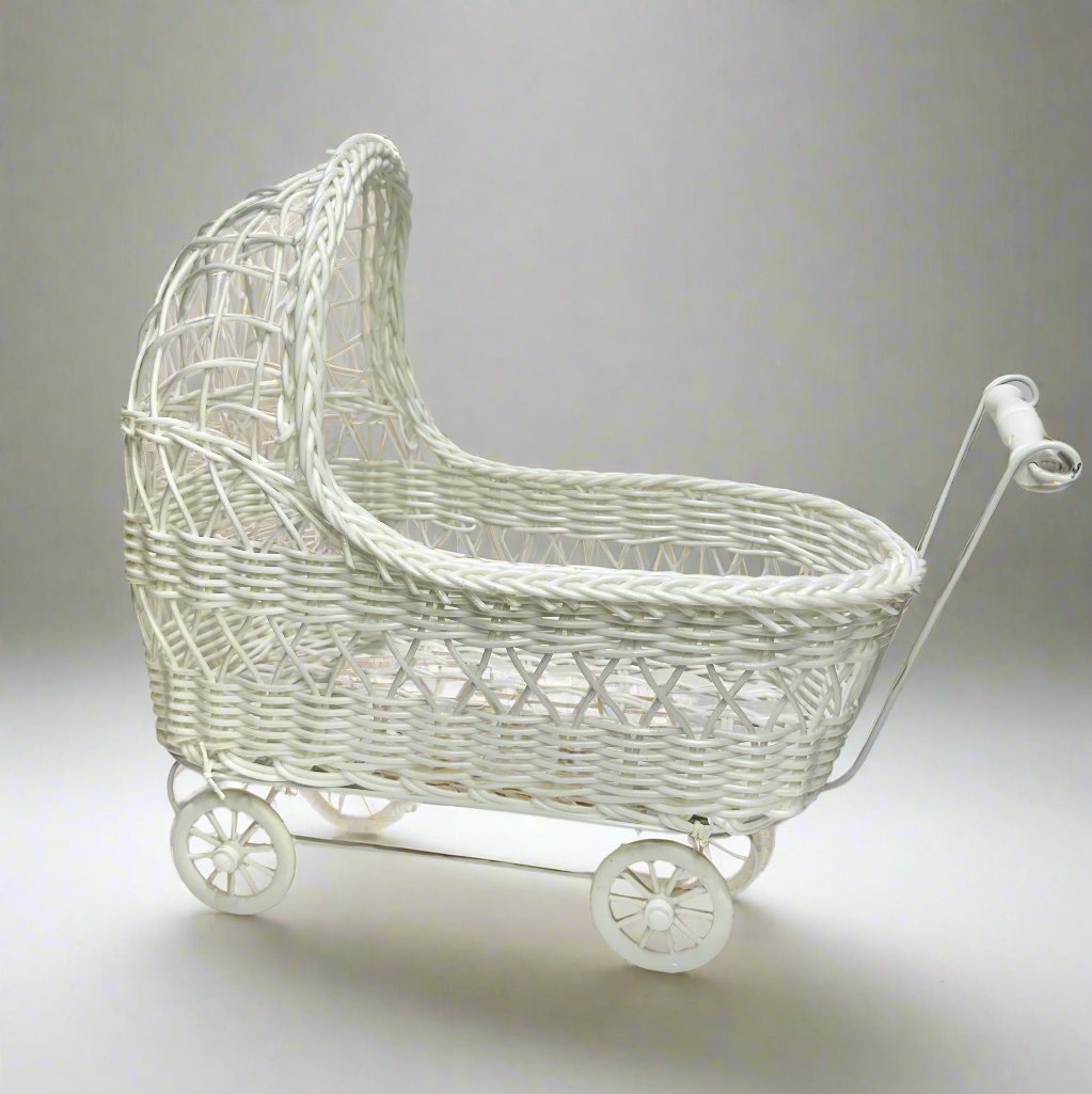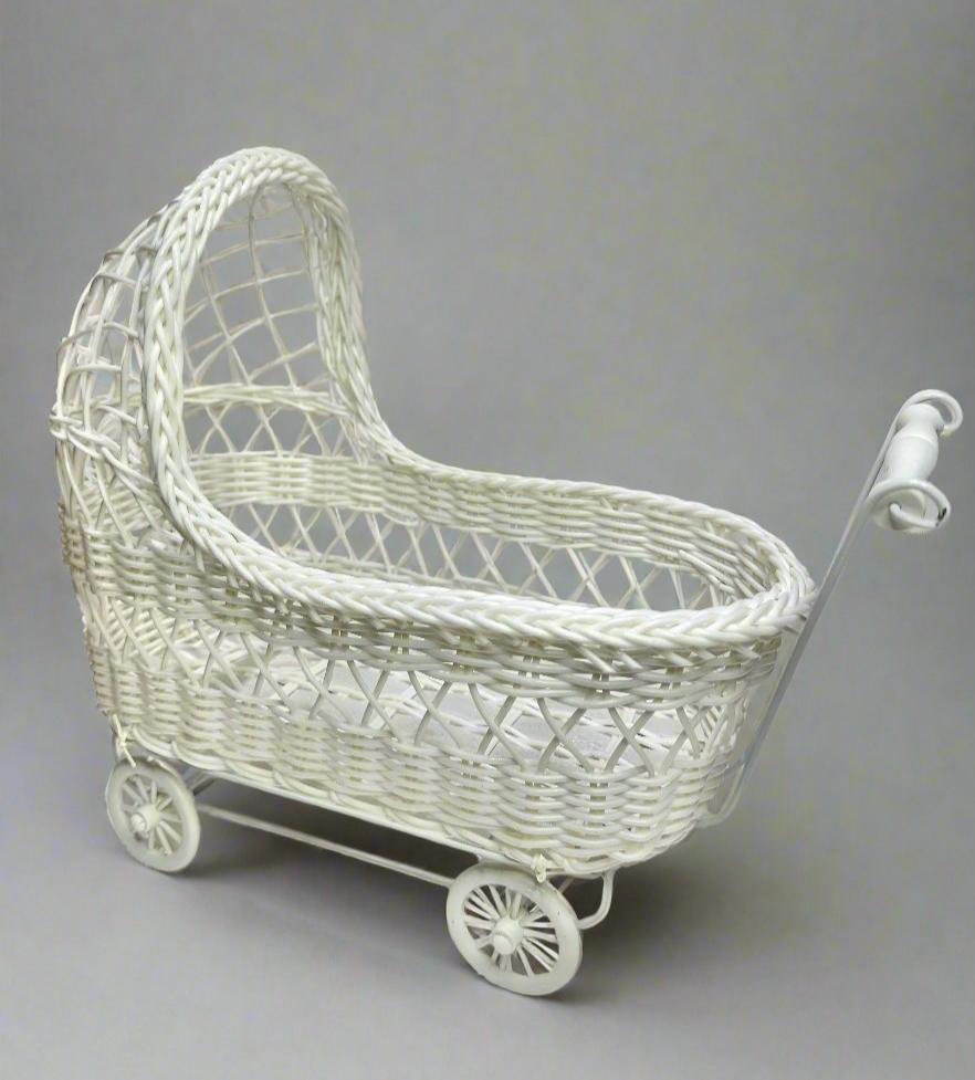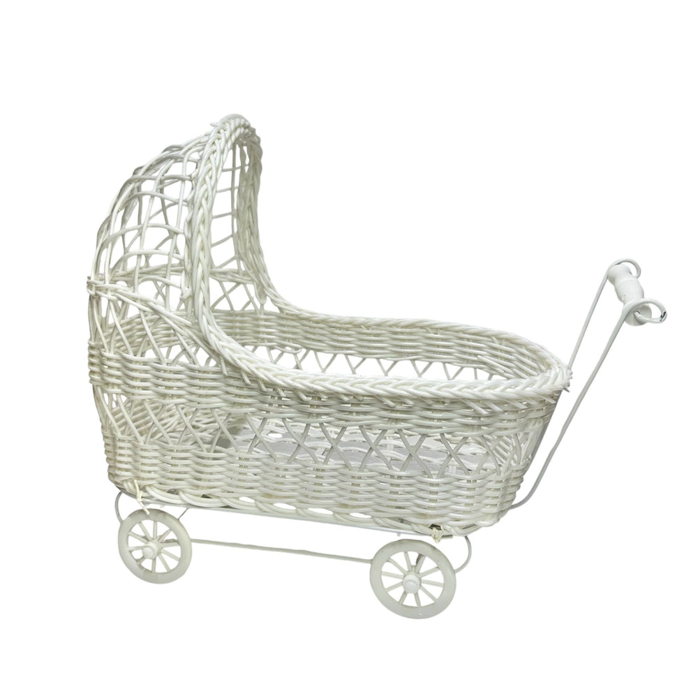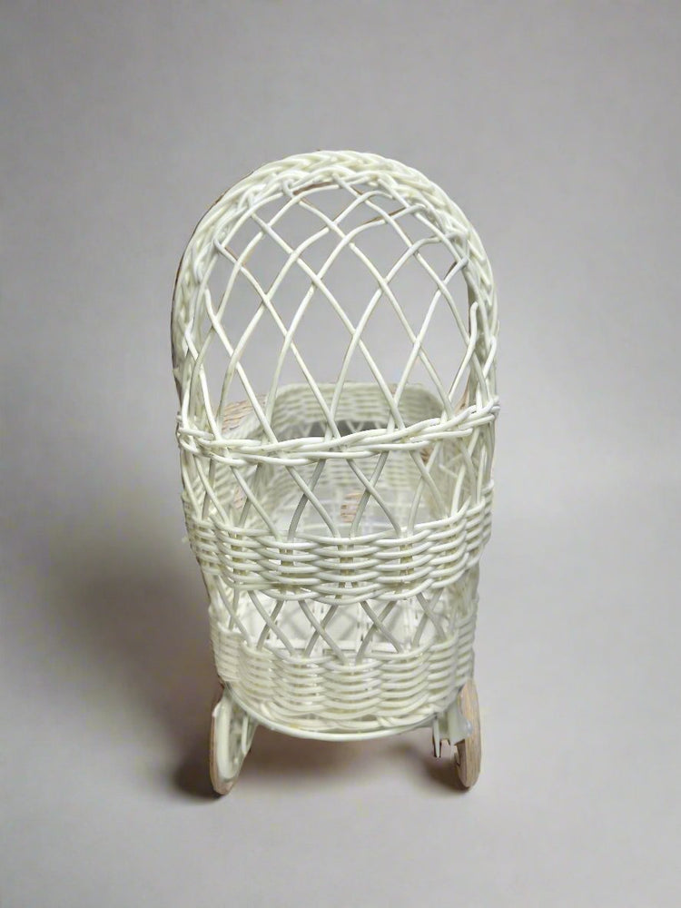 11'' Wicker Baby Carriage - Baby Shower Centerpiece White