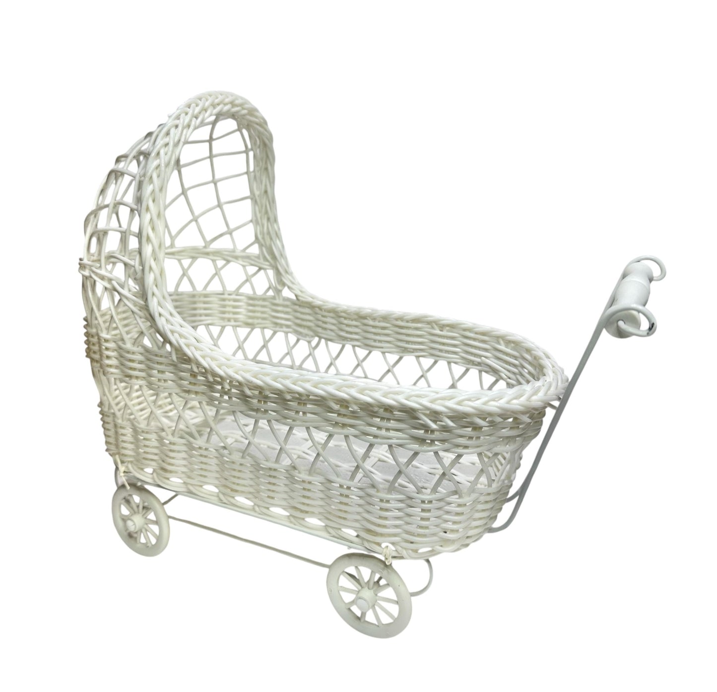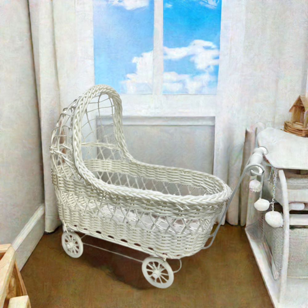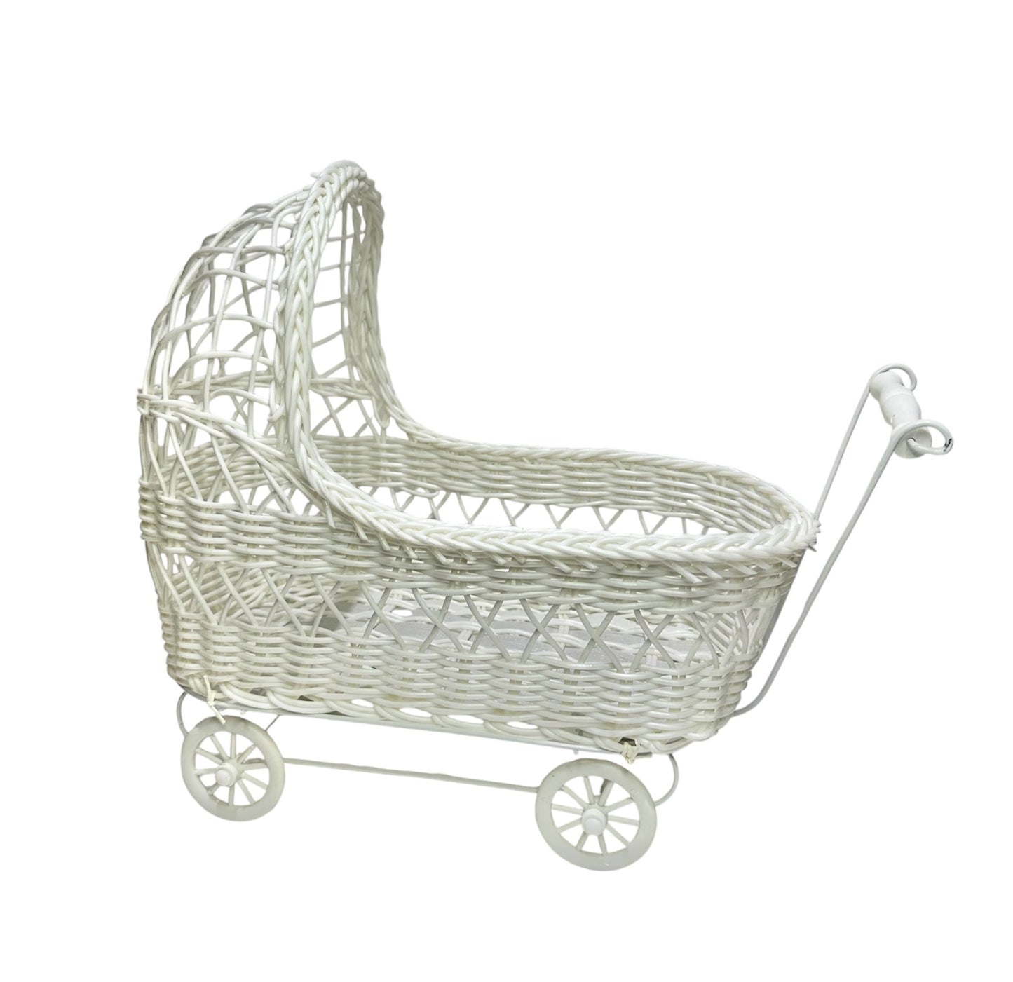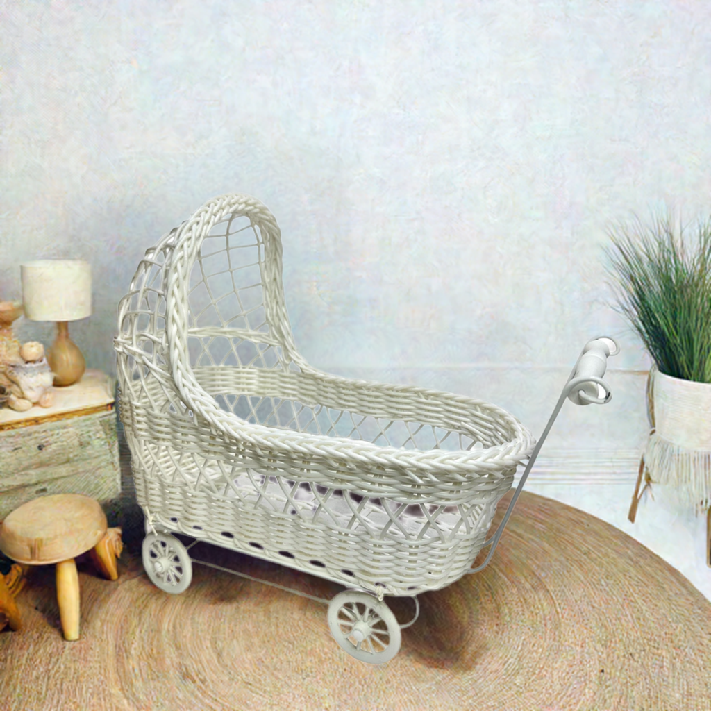 11'' Wicker Baby Carriage - Baby Shower Centerpiece White