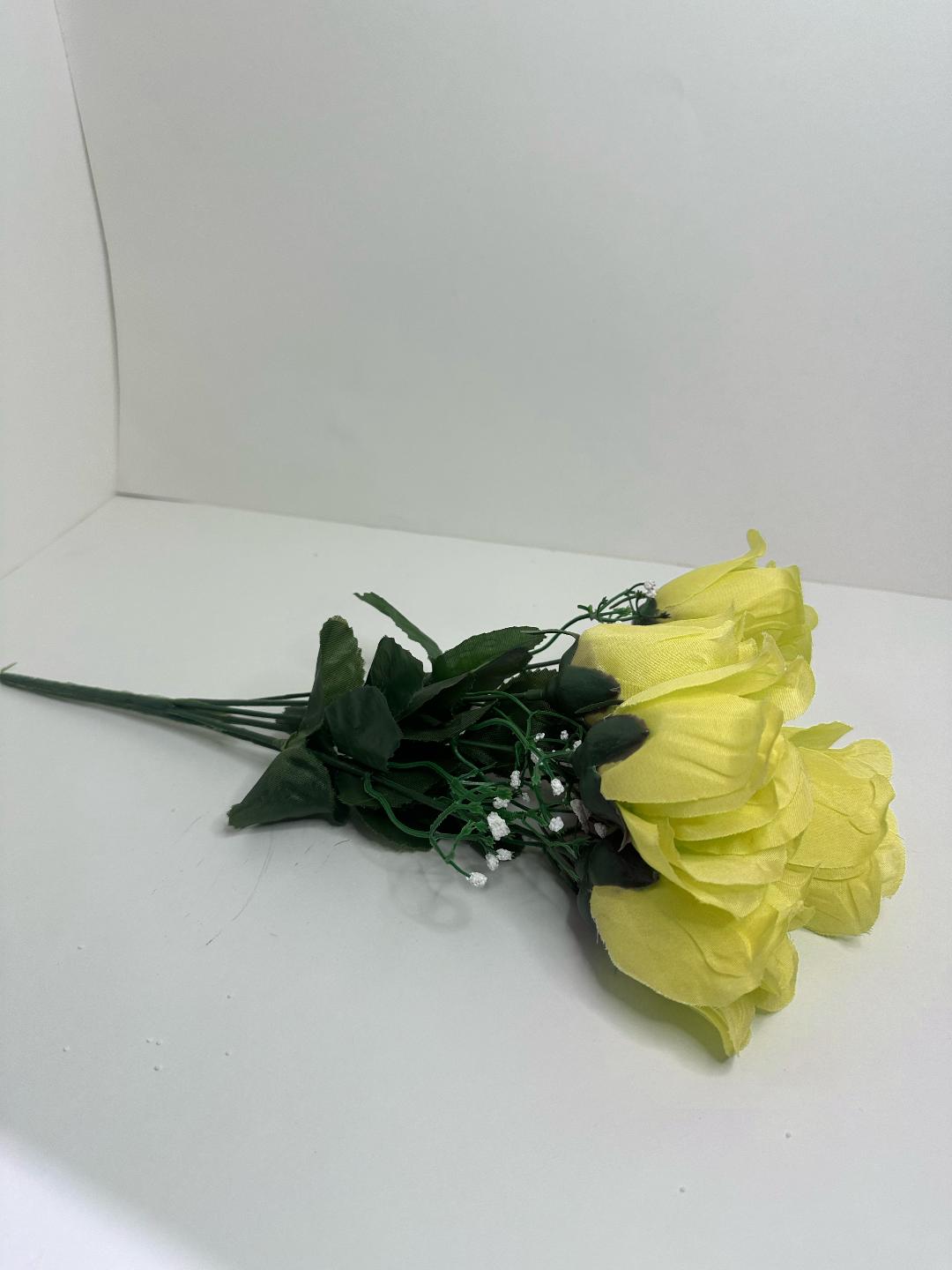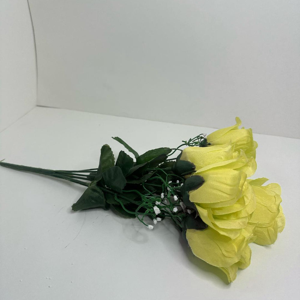 7 Heads Yellow Artificial Closed Rose Bush (12 Bushes)