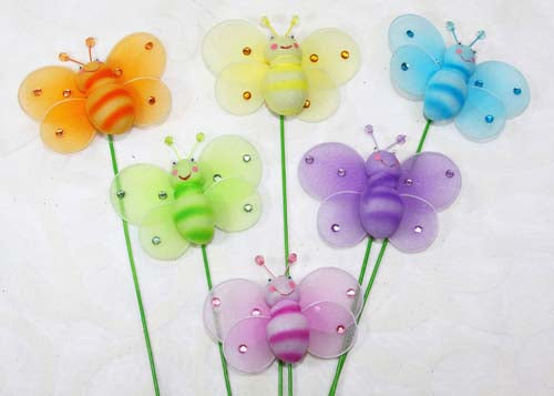 Nylon Bumble Bee Decoration With Stick (24 assorted pieces)