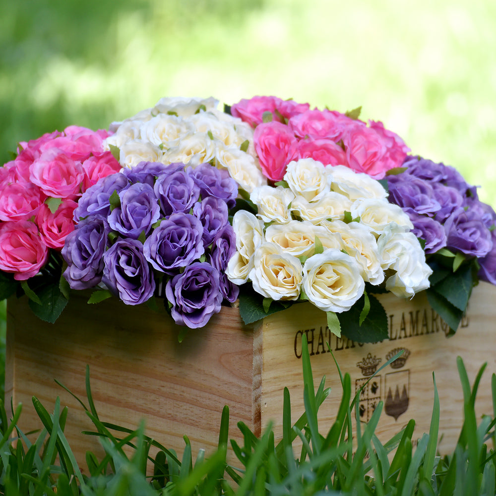 Our rose silk flower wedding bouquet is a perfect bouquet for the bride and her bridesmaids. The bouquet features opened roses. Each bush is 12" tall. The bouquet measures approximately 6" in diameter. The length of each branch of the bouquet of flower is about 12 inch, the diameter of flower head is about 2 inch.