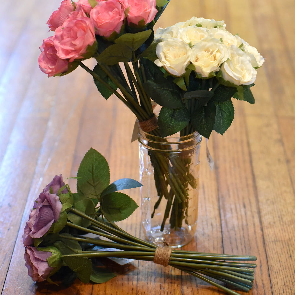 Rose Silk Flower Wedding Bridal Bouquet Rose Pink